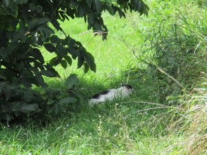 出発してすぐに「ねこだー!」と子ども達!ビックリしたのか、横から丸見えだけど、隠れたつもりのネコに「かくれんぼしてるね」「バイバーイ!いってきま~す!」と手を振って歩き出しました。