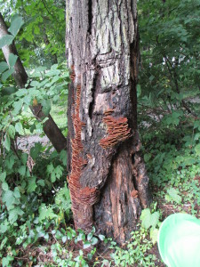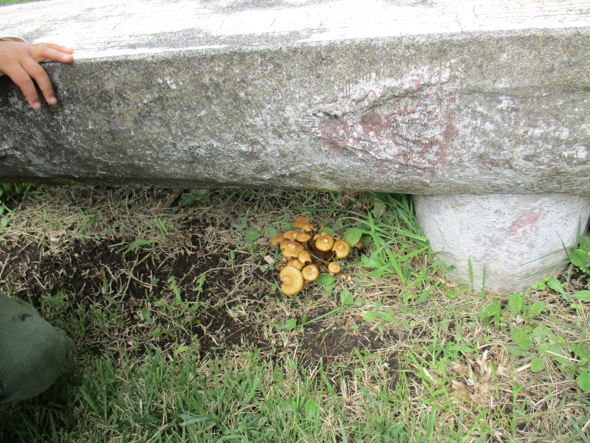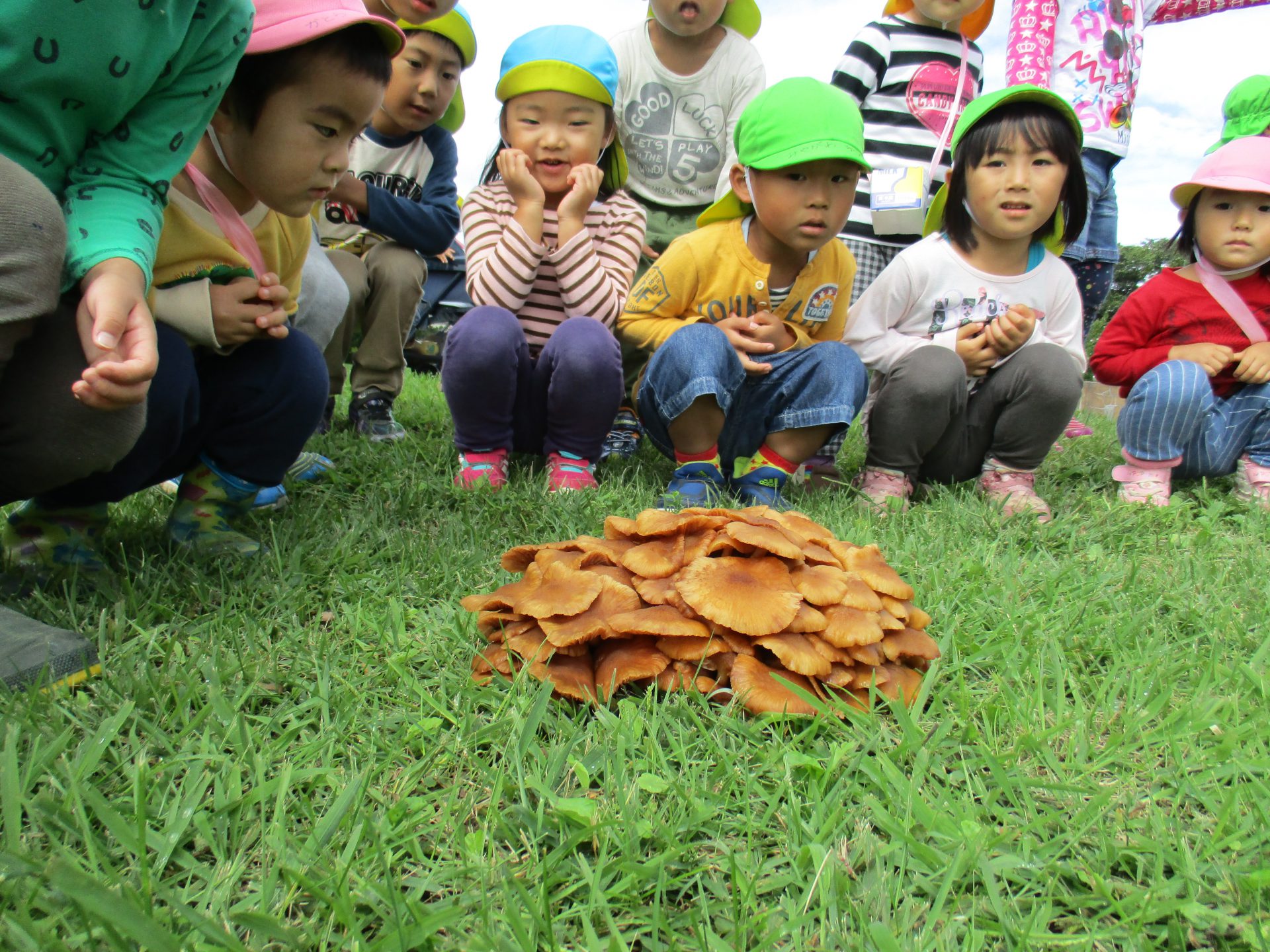水戸口公園の中で大きなキノコのかたまりを発見しました!!「すご~い!」「食べれるのかなぁ?」と興味津々の子ども達でした。