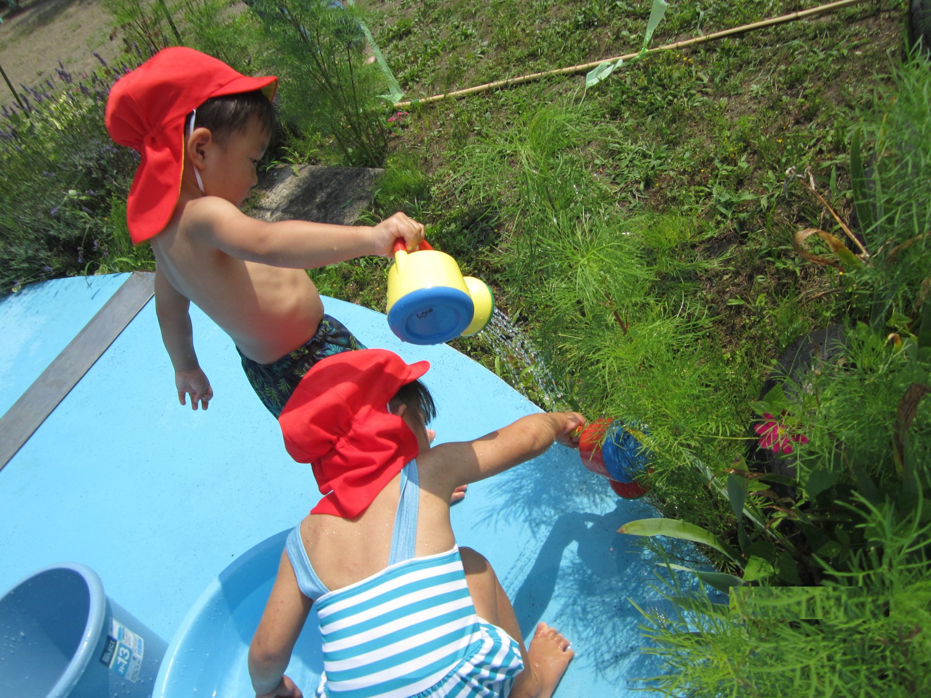 夏らしいキラキラと太陽が出る日には、水遊びをして楽しんでいます。