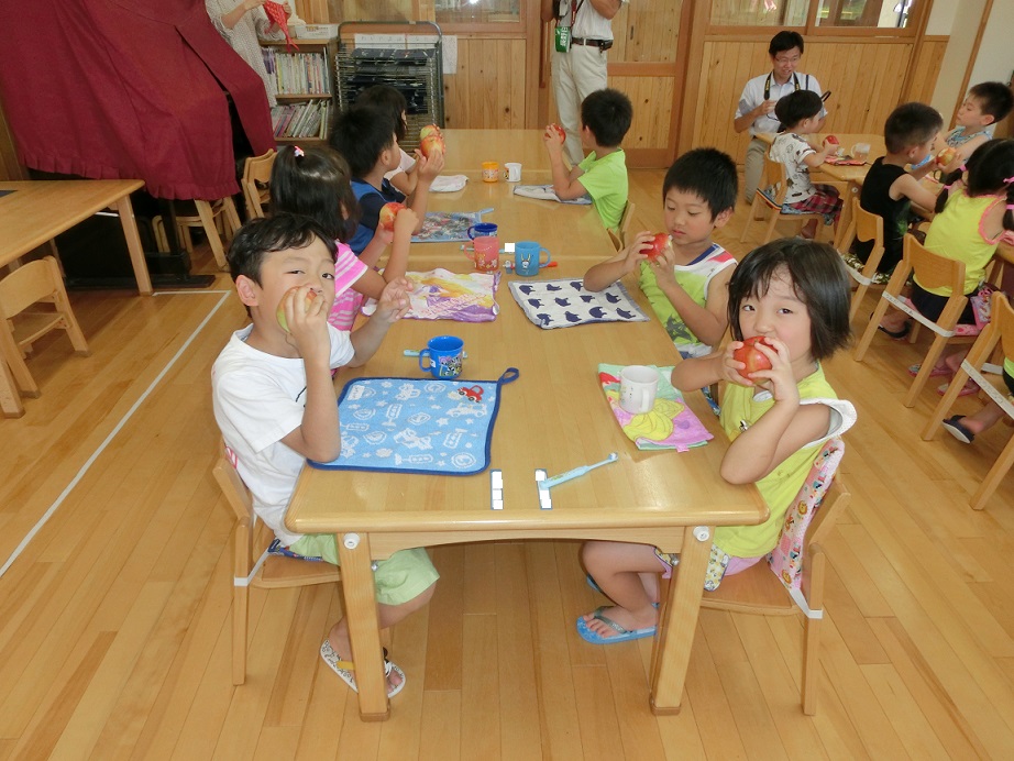 お盆前にりんごの丸かじりができるのも地域の方のご厚意のお陰です。本当にありがとうございます。