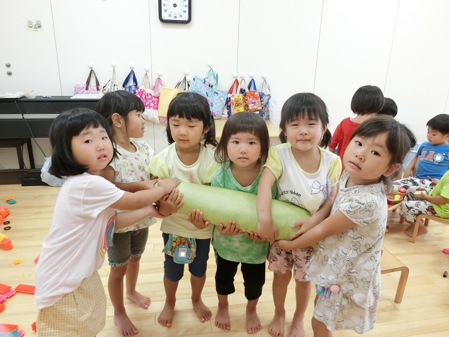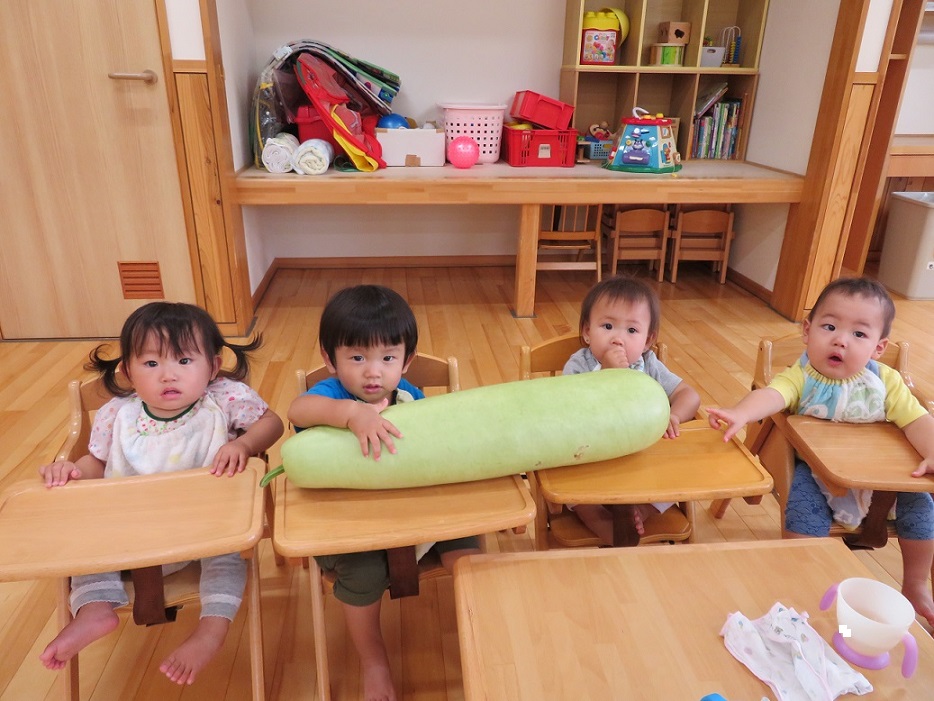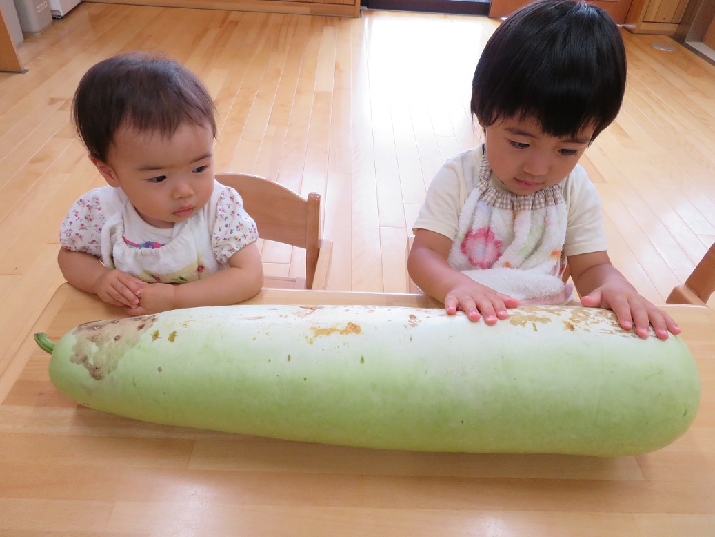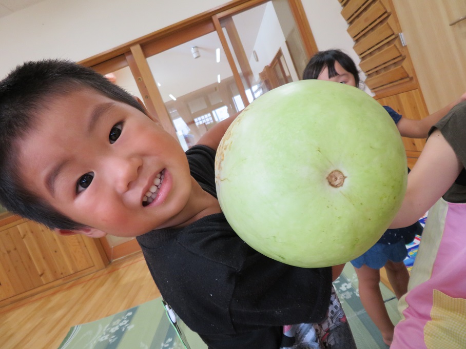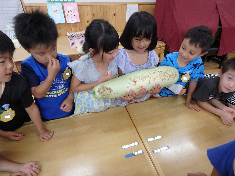 年長児も「夕顔!家でも食べる!」という子がありました。年長児も実際に自分たちで持ってみました。