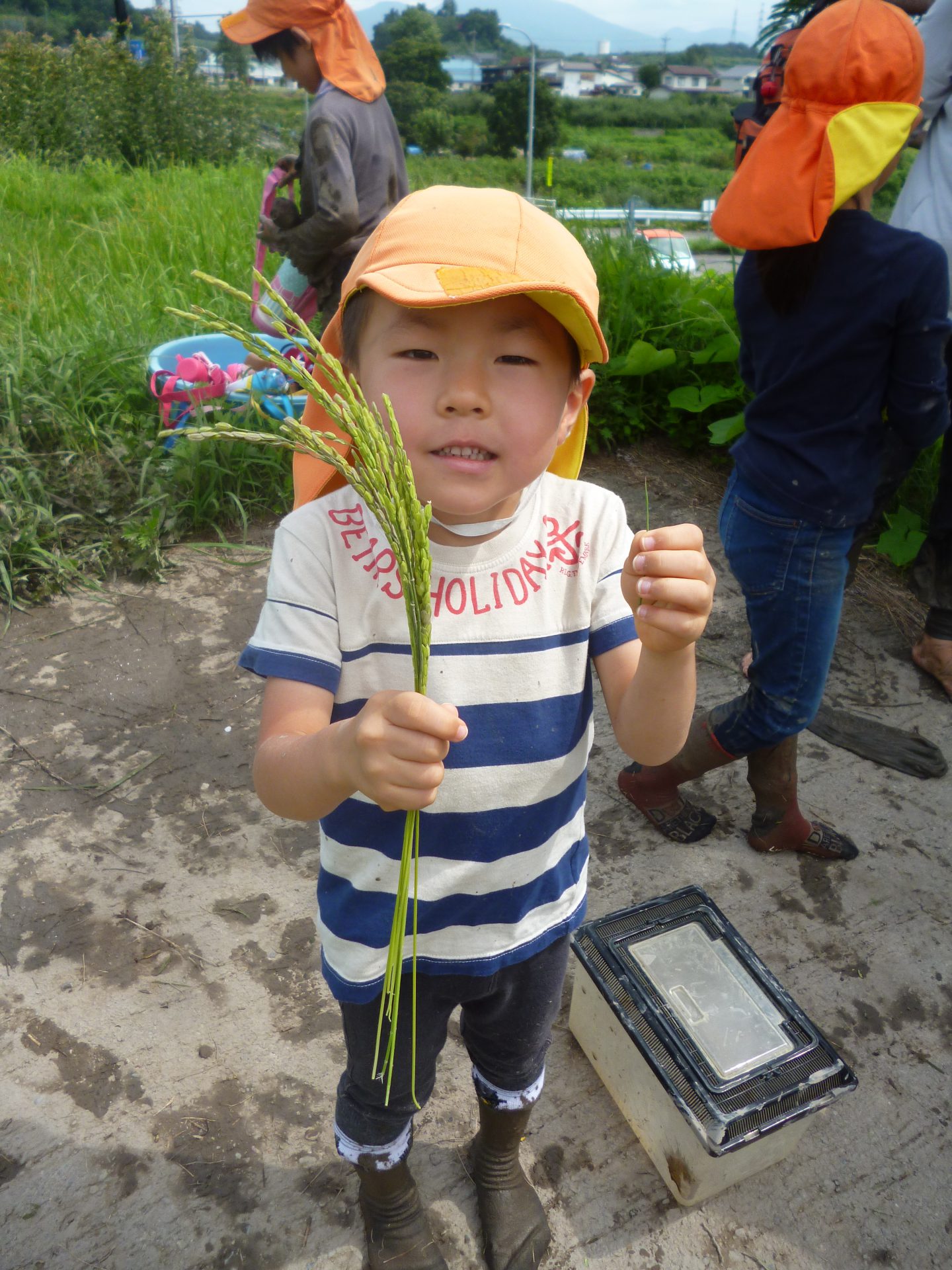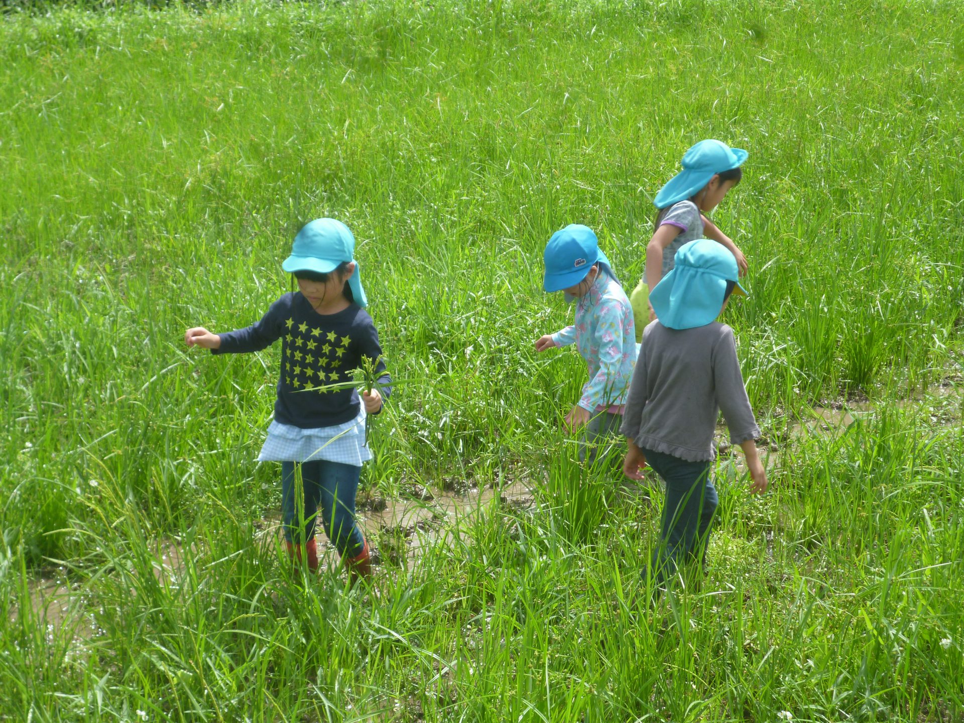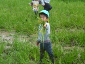 初めて田んぼに入ってみました。ちょっと抵抗がある子もいます。