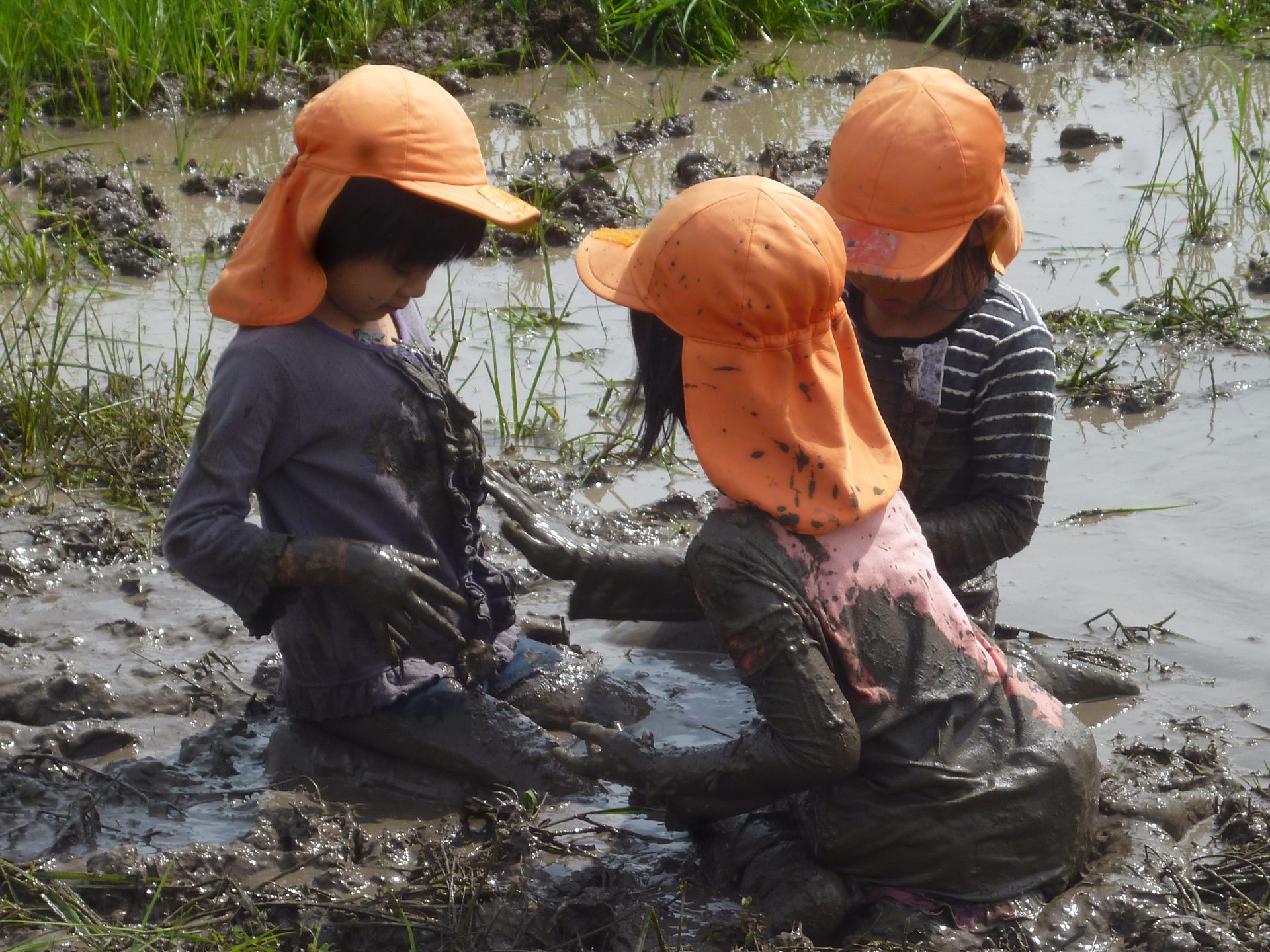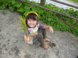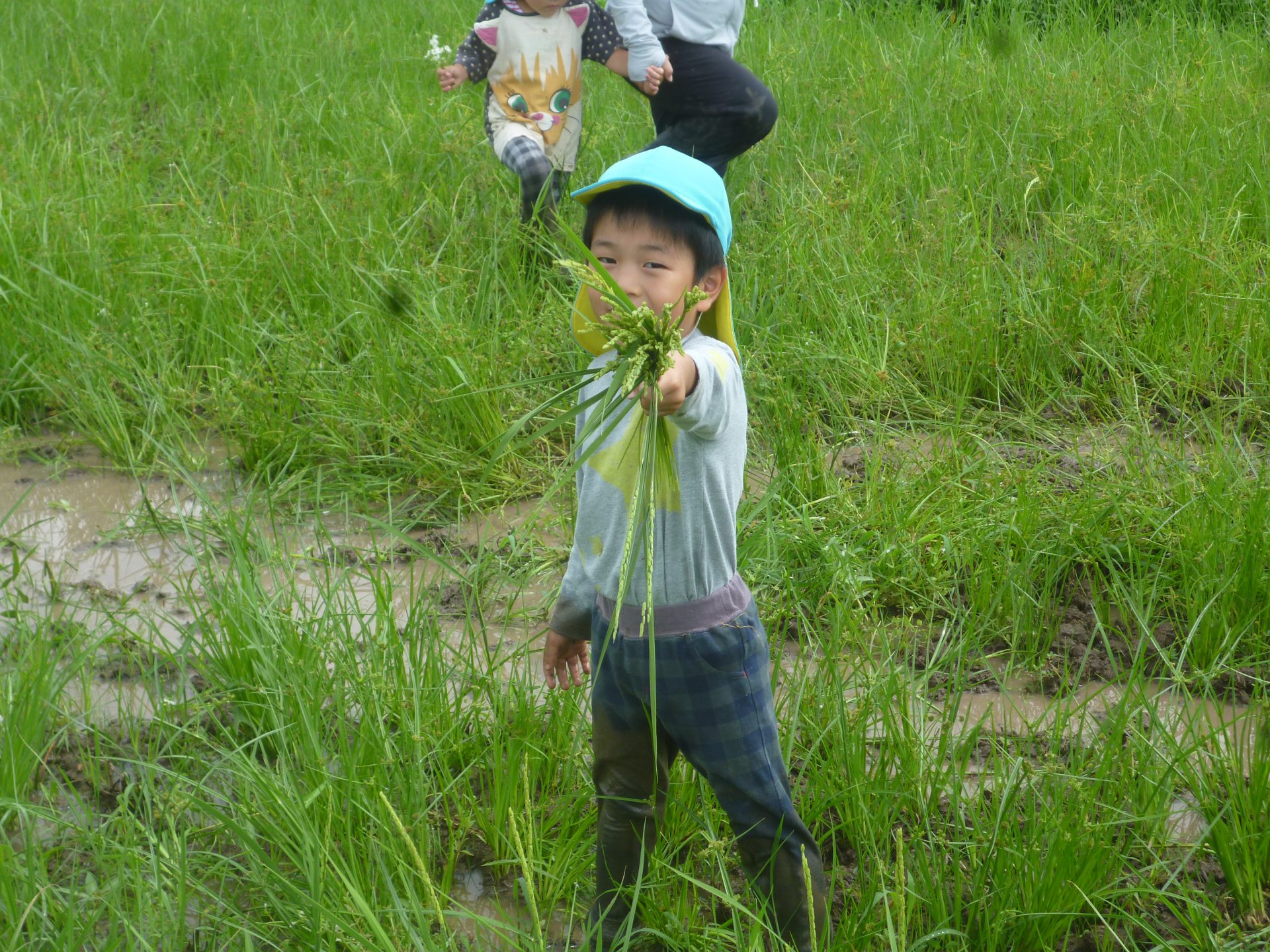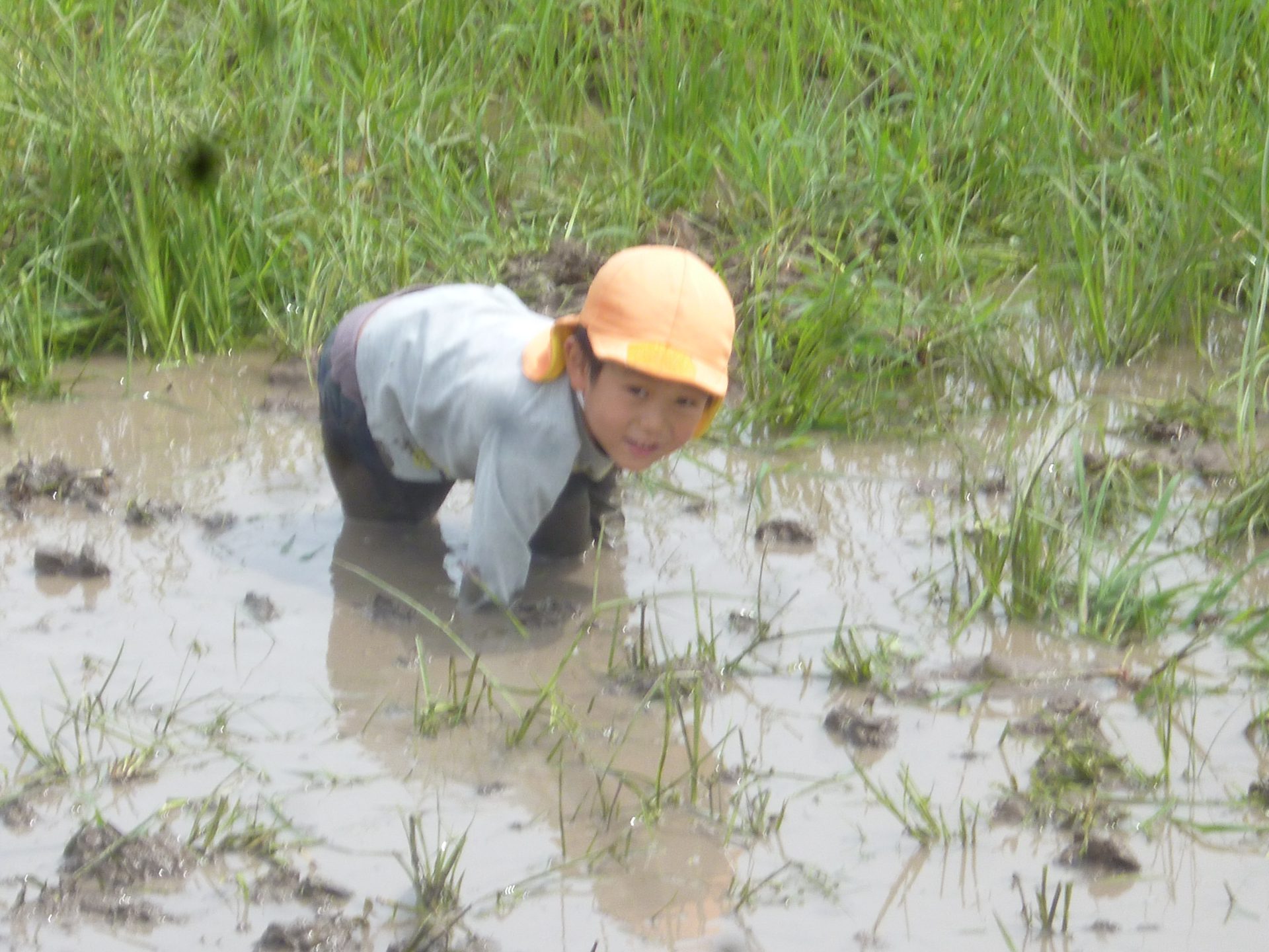 田んぼって深いんだなあ。手が抜けなくなったよ~。どこまで深いんだろう?