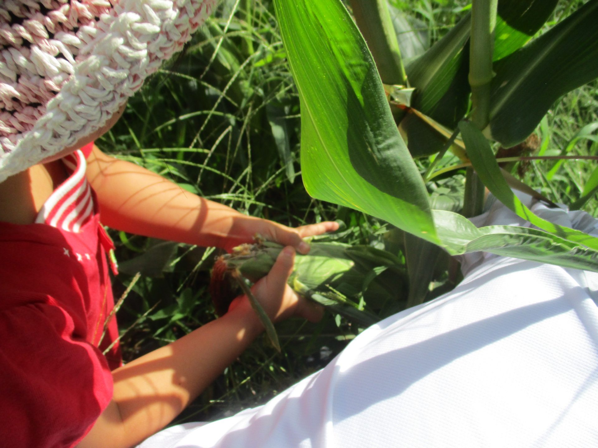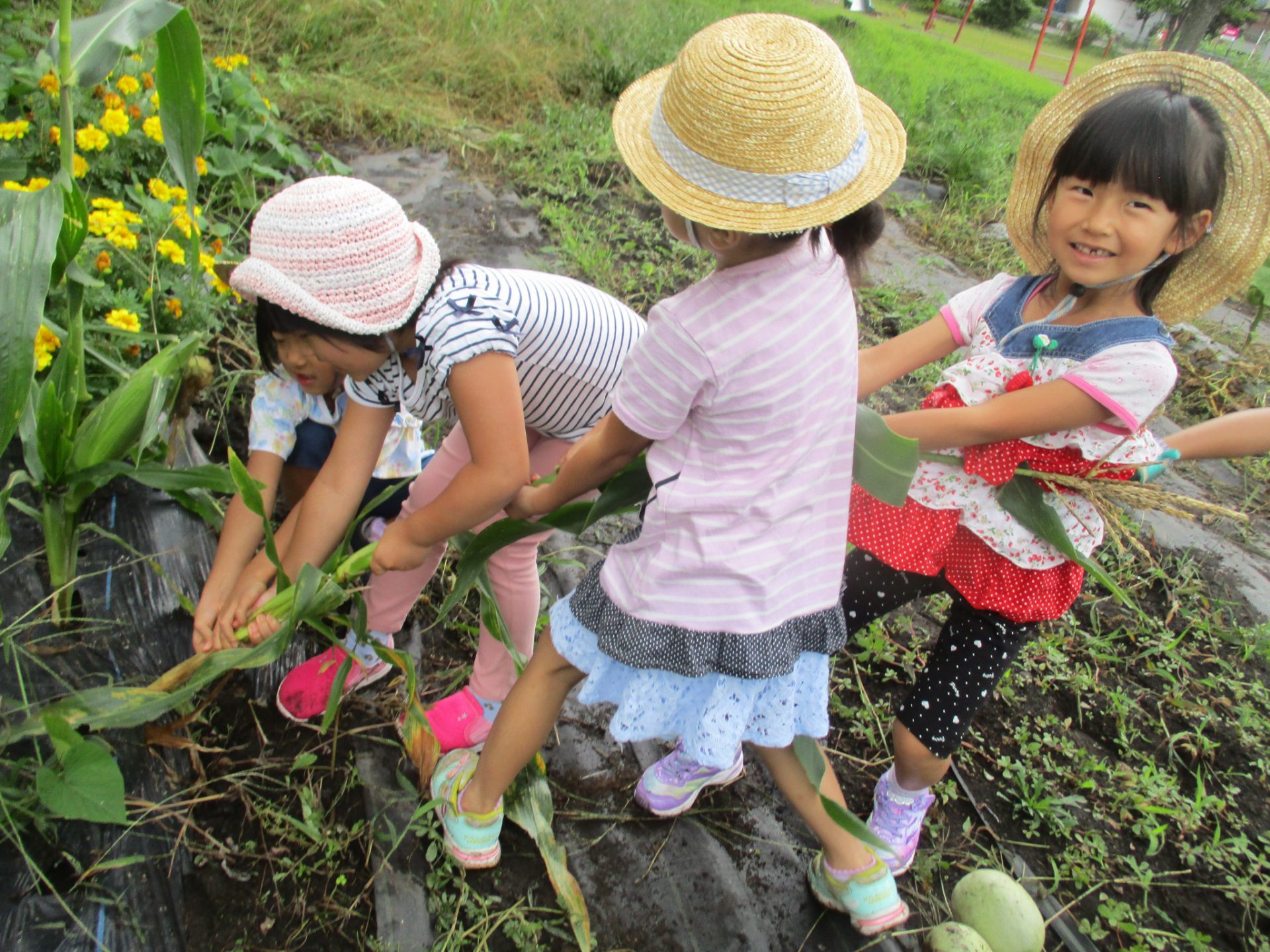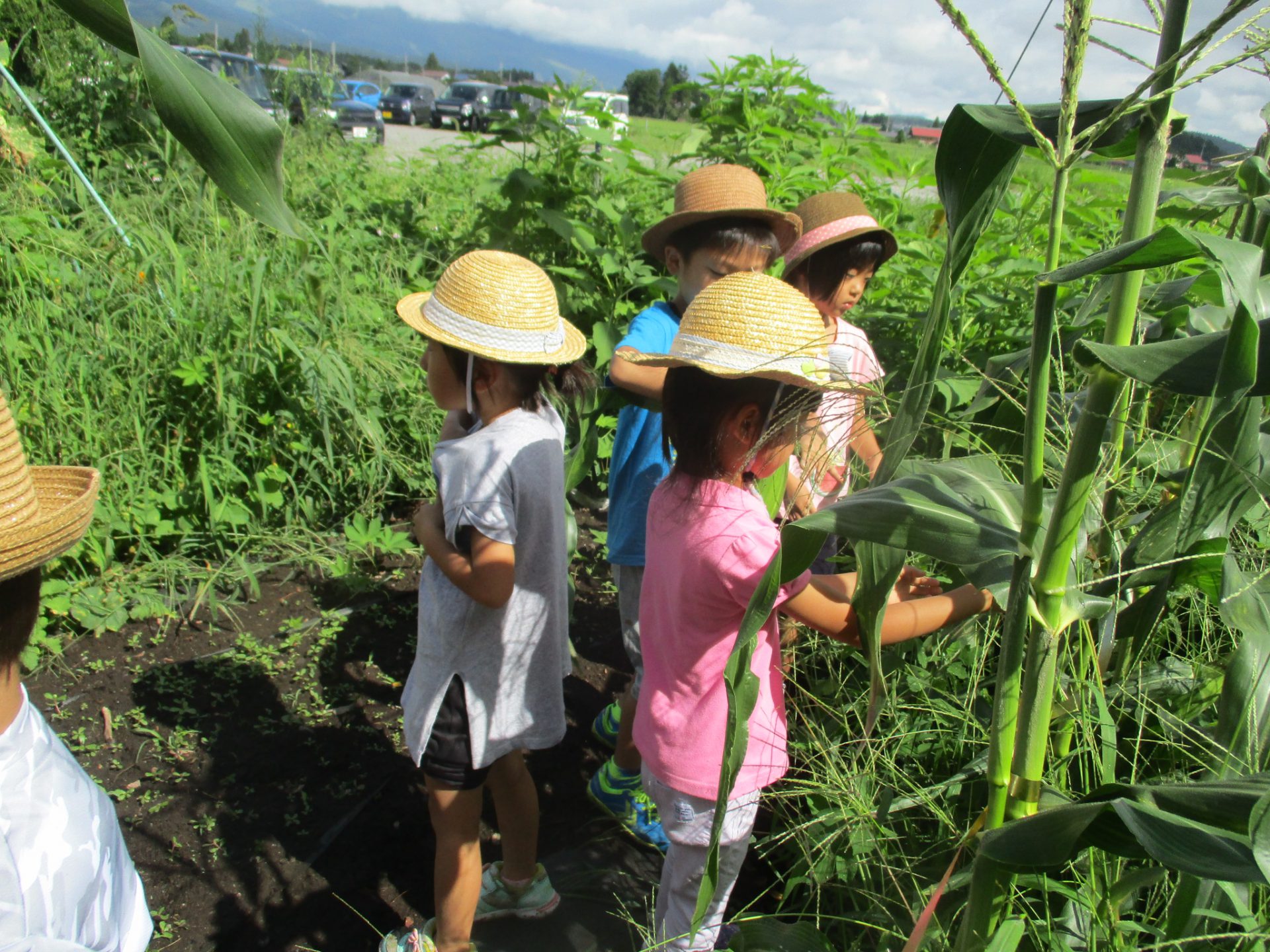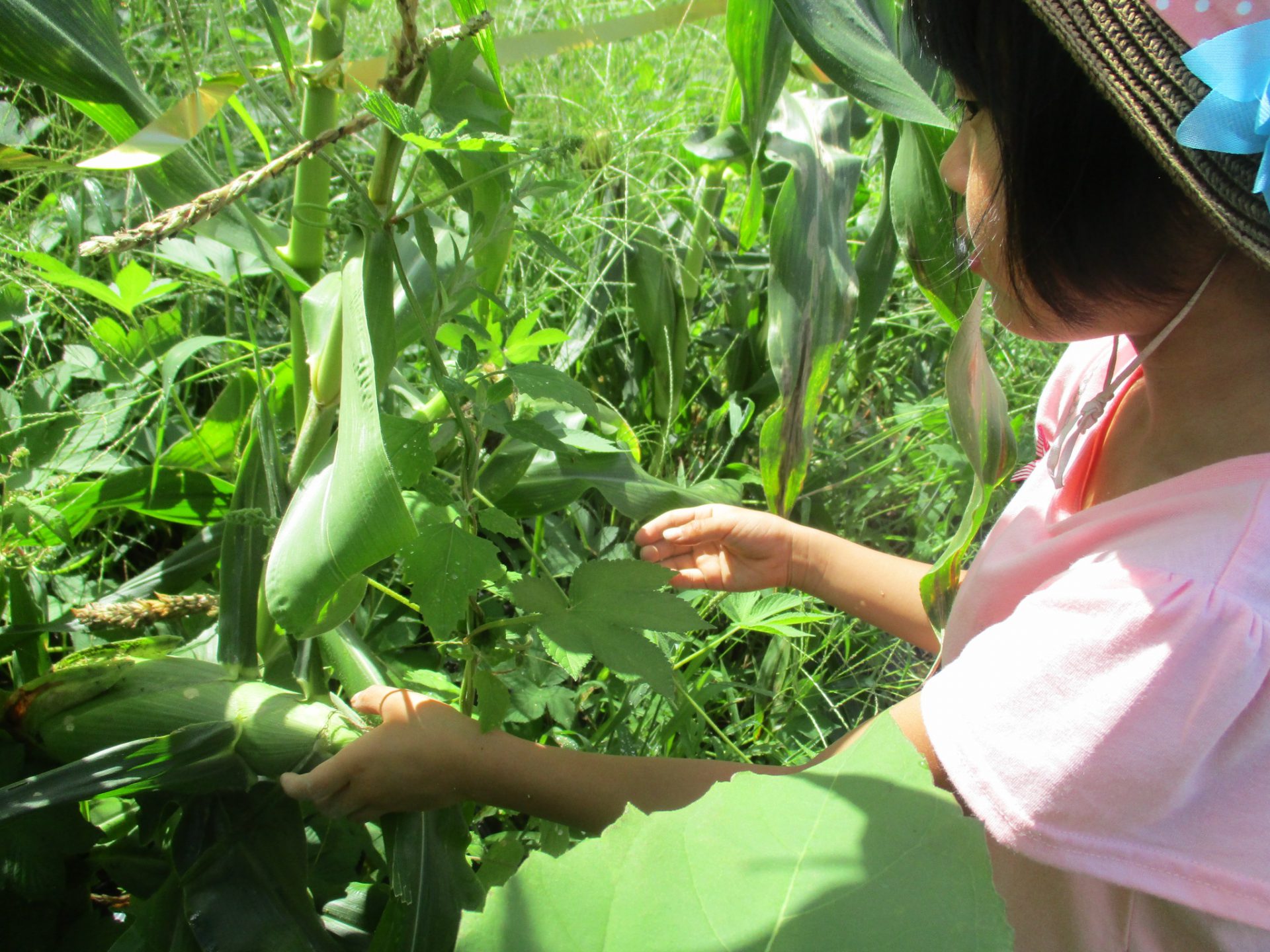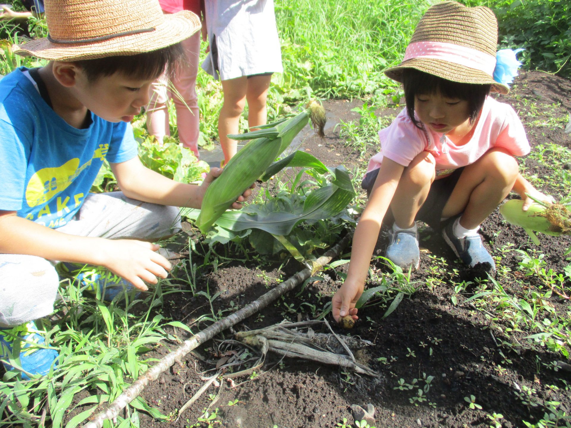 「抜いたら、もろこしちっちゃくなった!」「でもまだ私たちよりおおきいね」