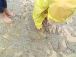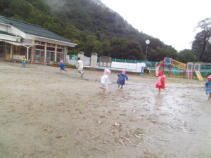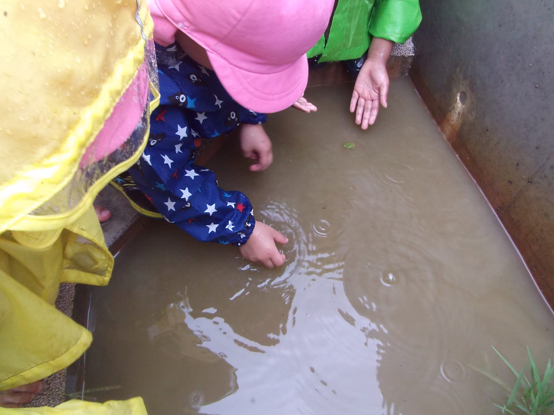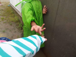 雨の中であそぶことで晴れの日とは違った発見や、目で見たこと、肌、体で感じたこと、気づきがありました。