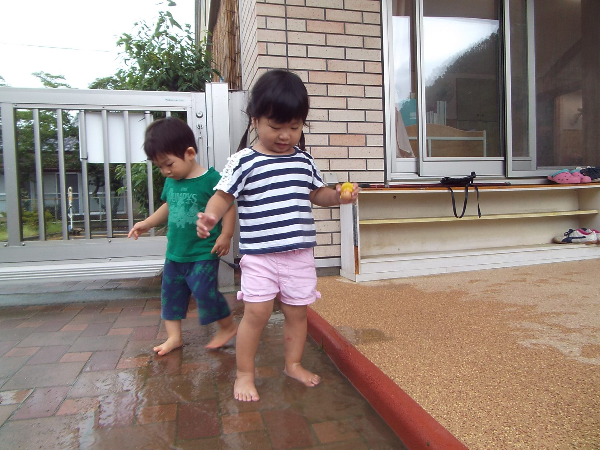 とうとう外に出ちゃいました。「わぁ~~!」ピチャ・・
