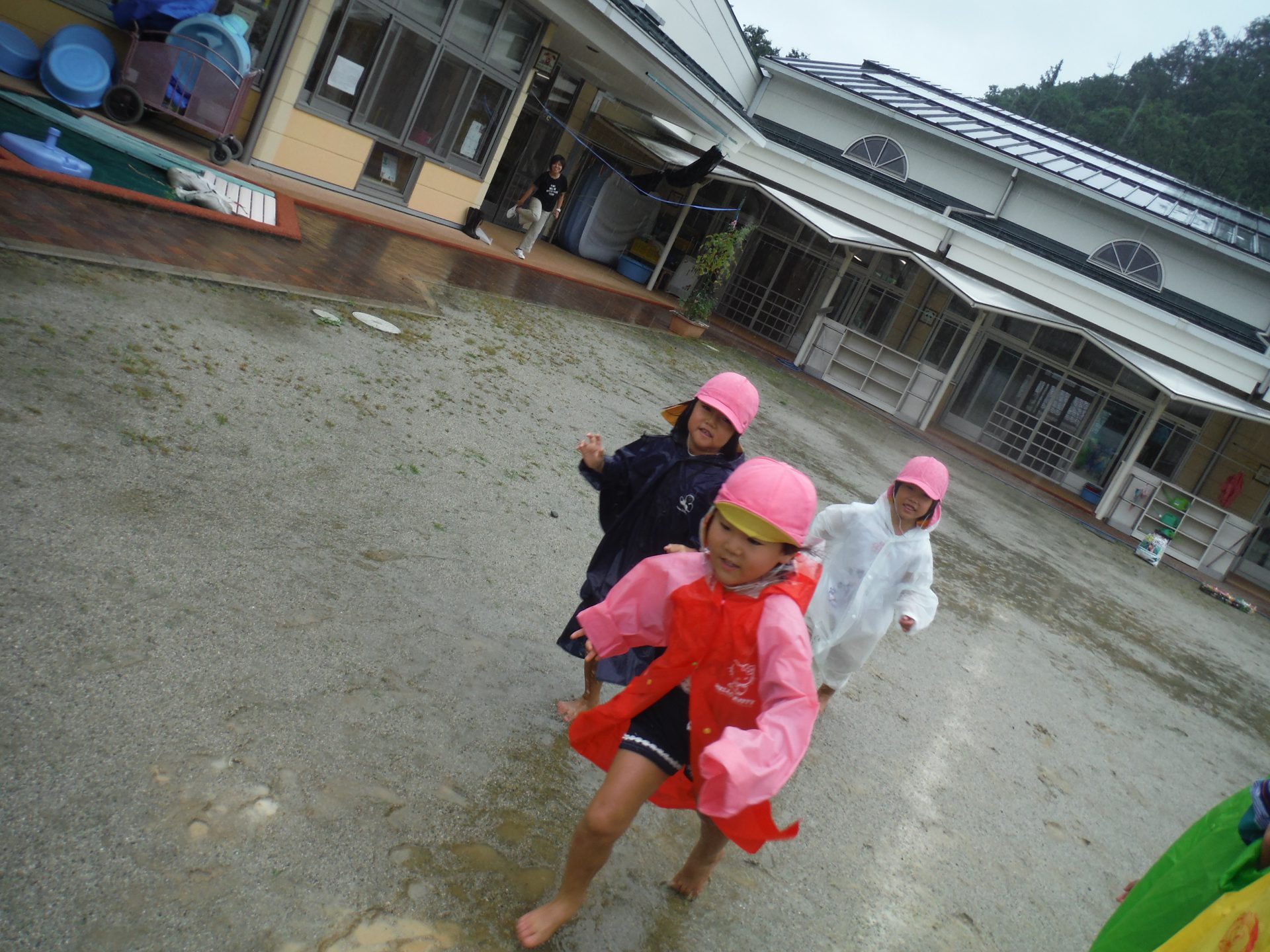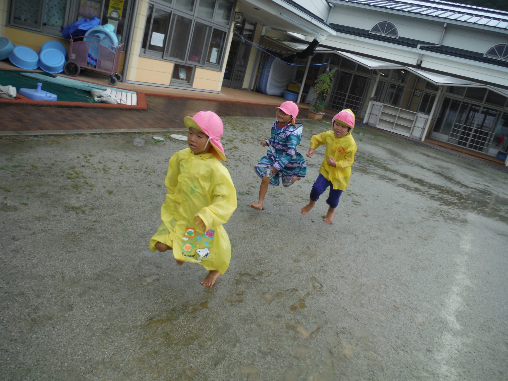 お家の方にカッパを用意してもらい、雨の日散歩を楽しみにしていて、6月プールが始まるまでは毎日「雨ふらないかなあー。」と雨の日を待ち遠しそうにしている子どもたちの姿は初めて見ました。