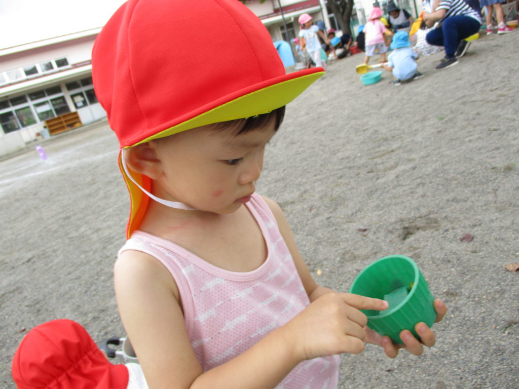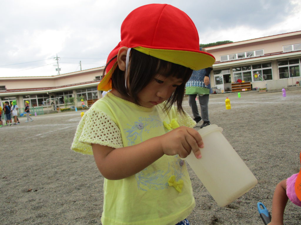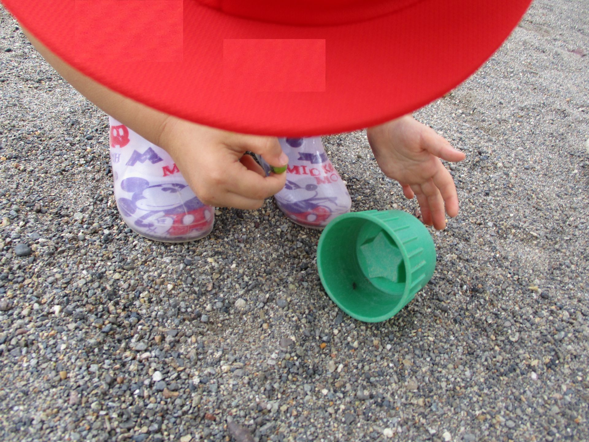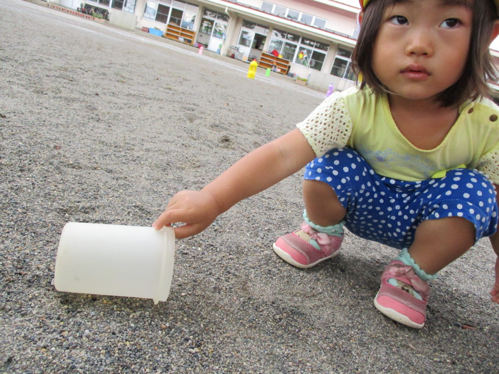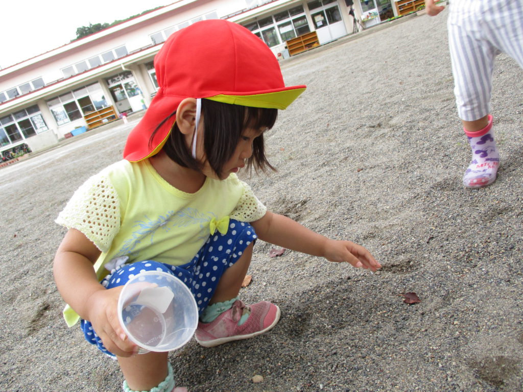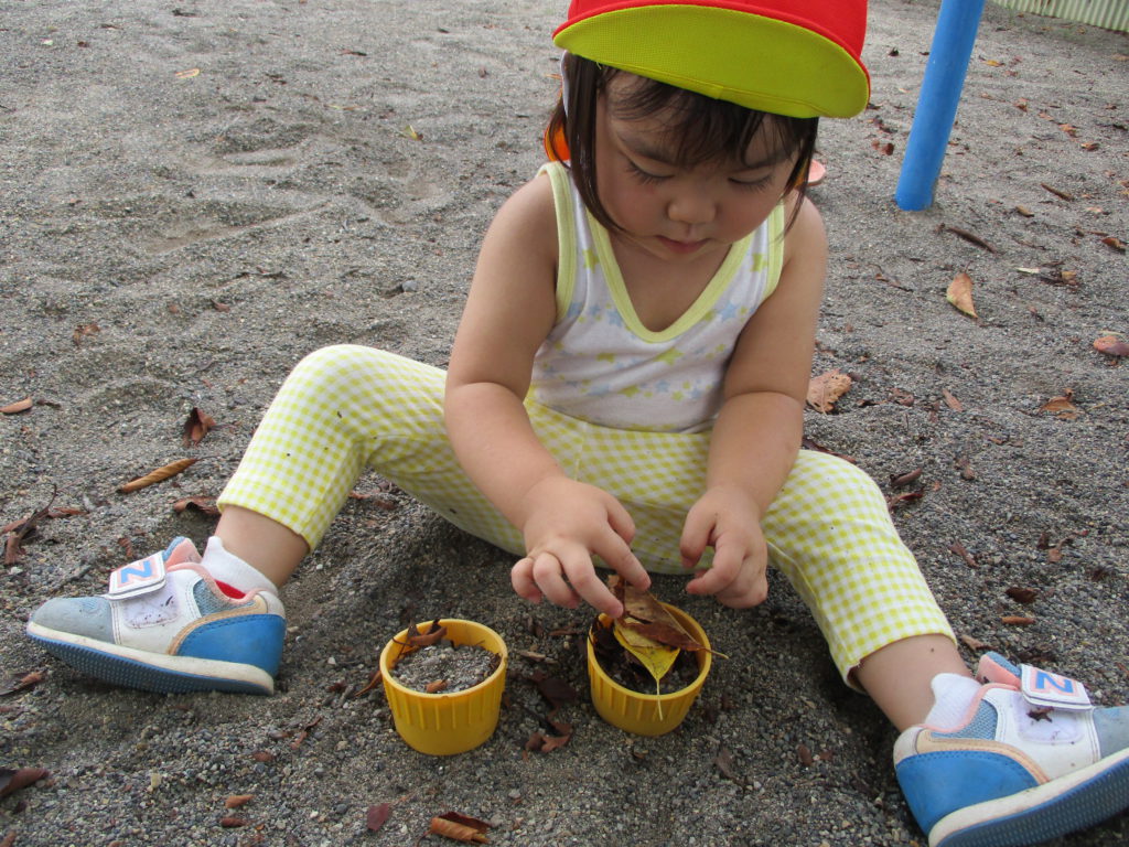 葉っぱをカップに拾い集めて楽しんでいるお友達もいました。