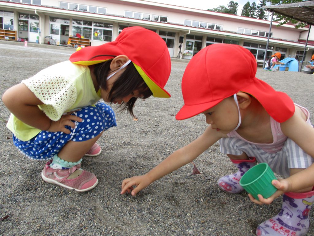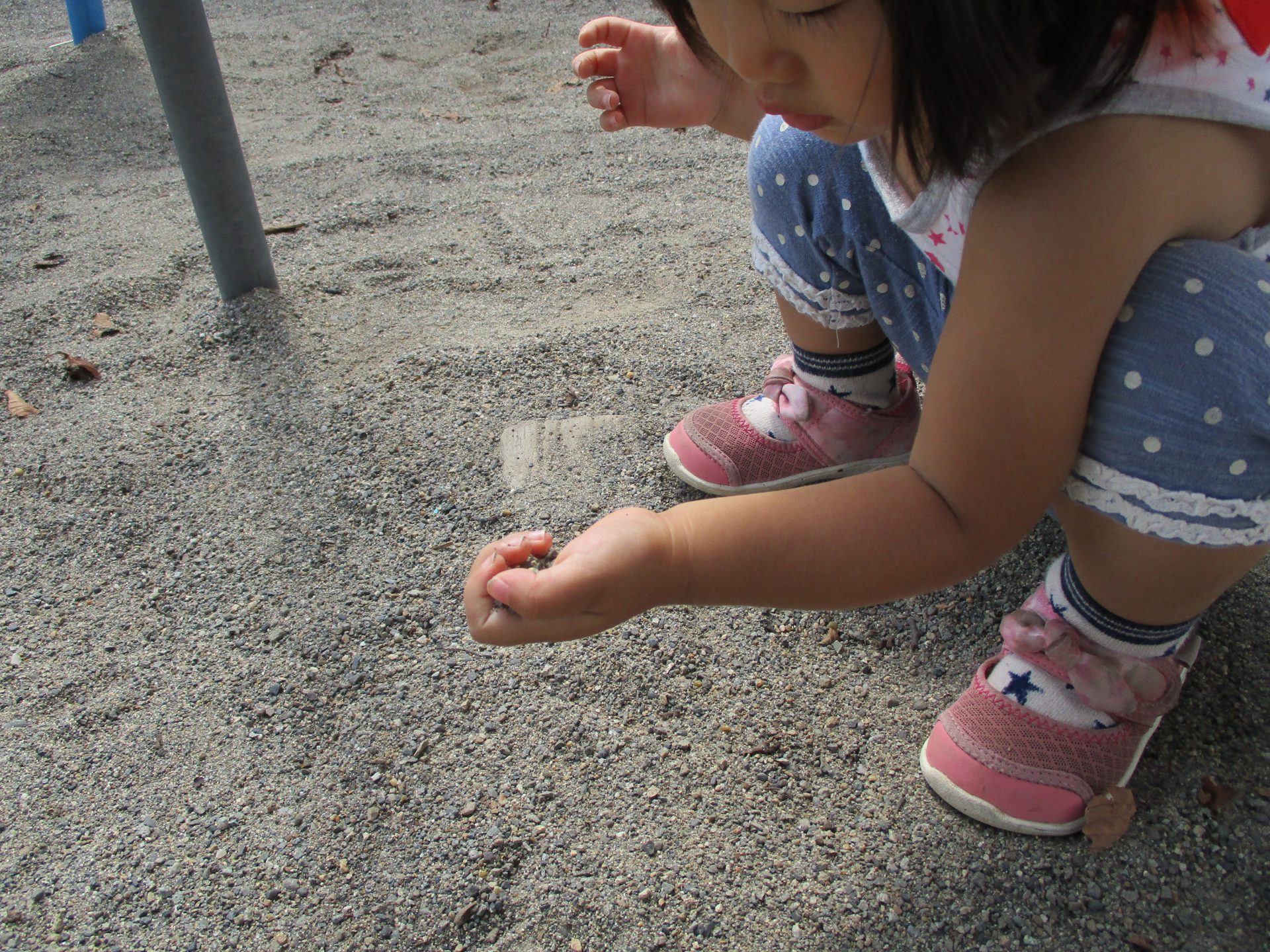 今度はお友達をそばでずっと見ていた女の子がありを見つけたようです。