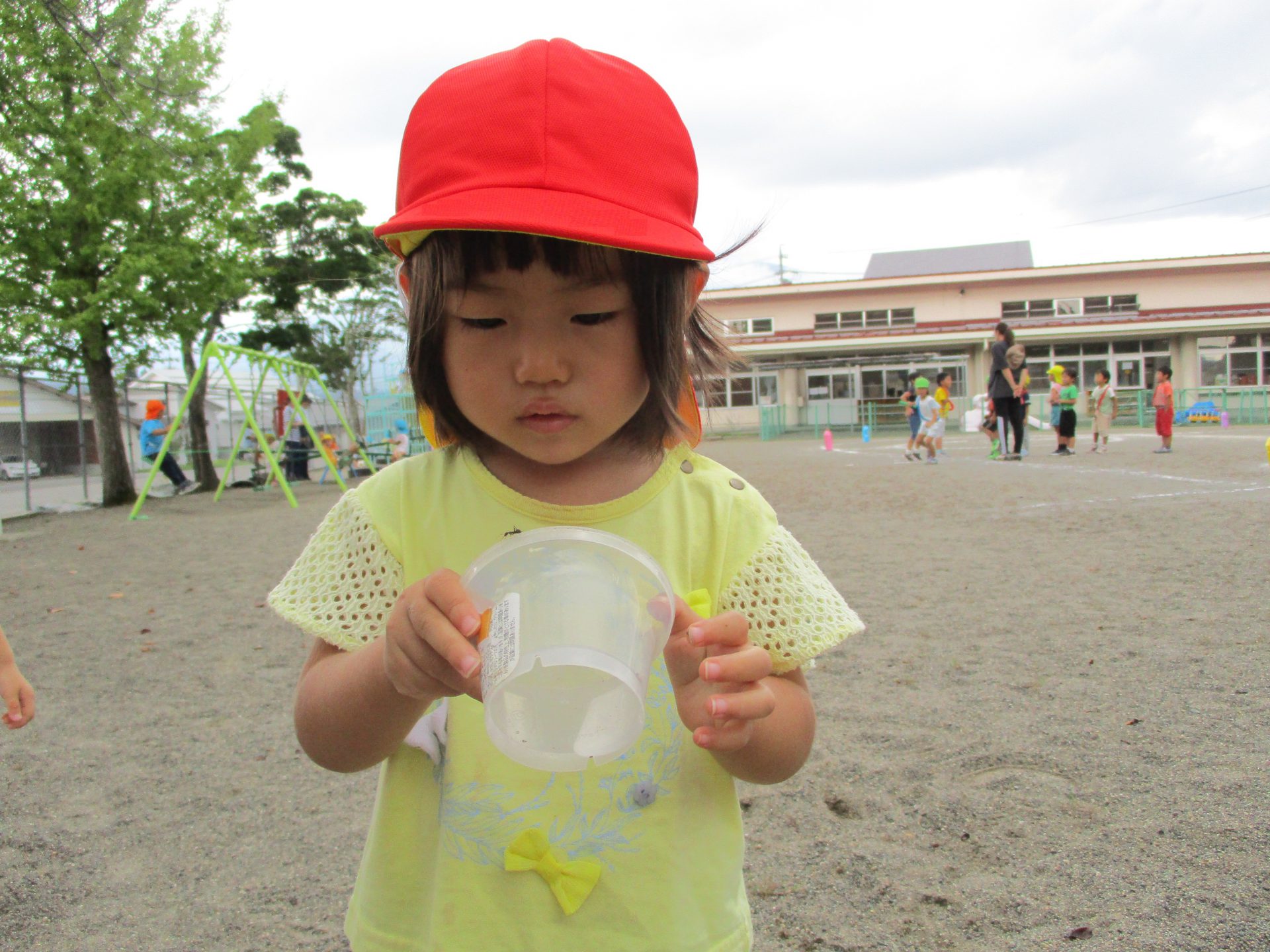 カップの中に入れたつもりが、小さいカップだったからでしょうか、逃げてしまったようです。