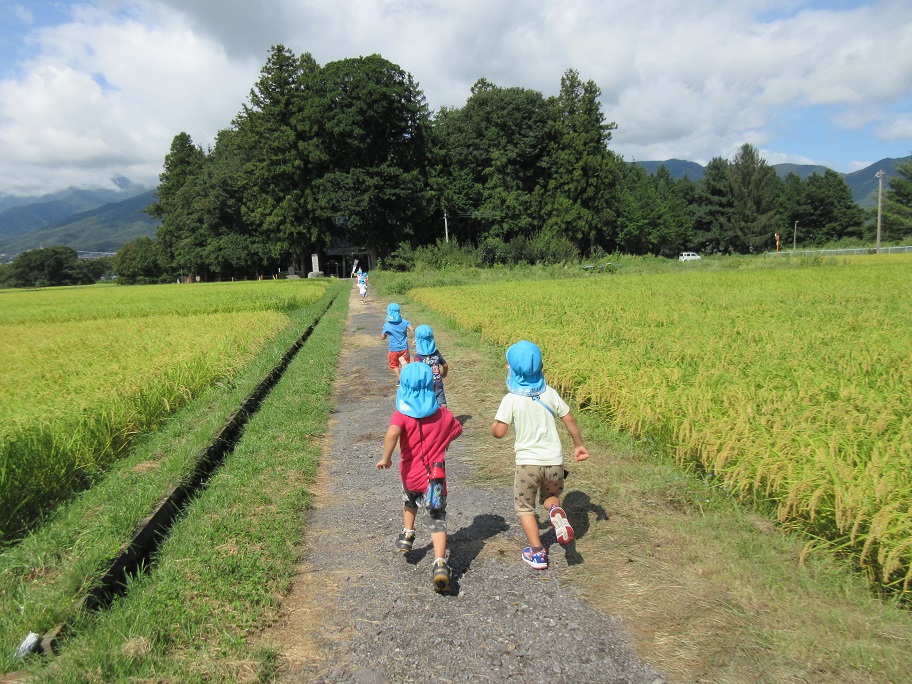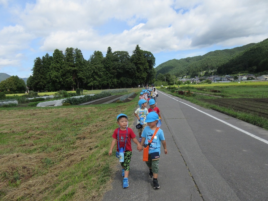今日は年少「りんご組」と「いちご組」が散歩に出掛けました。