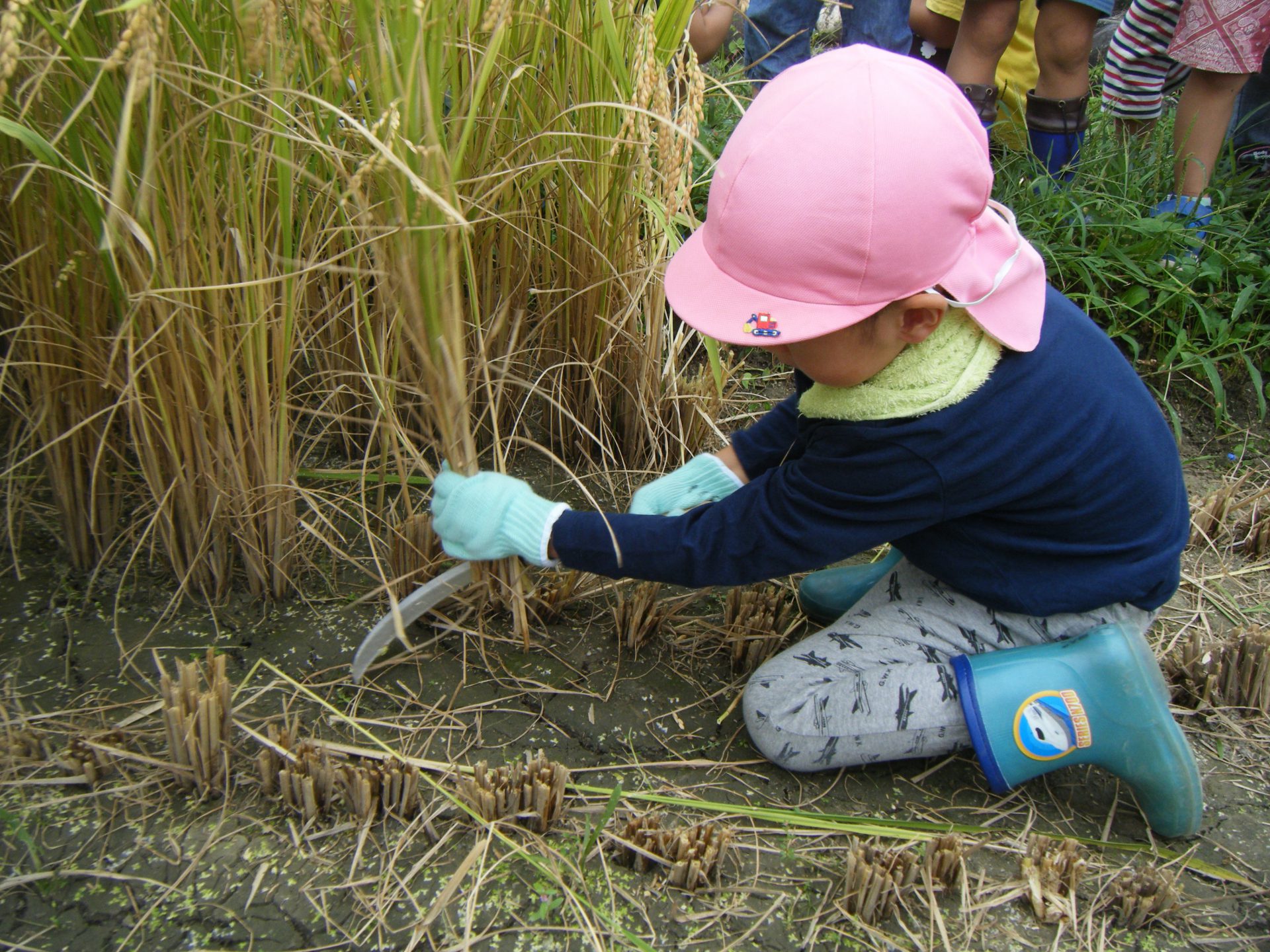 本物の稲刈り鎌で刈ってみました。
