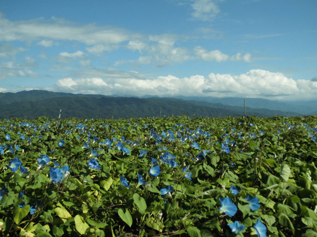 今年も、「青いアサガオ ヘブンリーブルーの花」がきれいに咲きました。