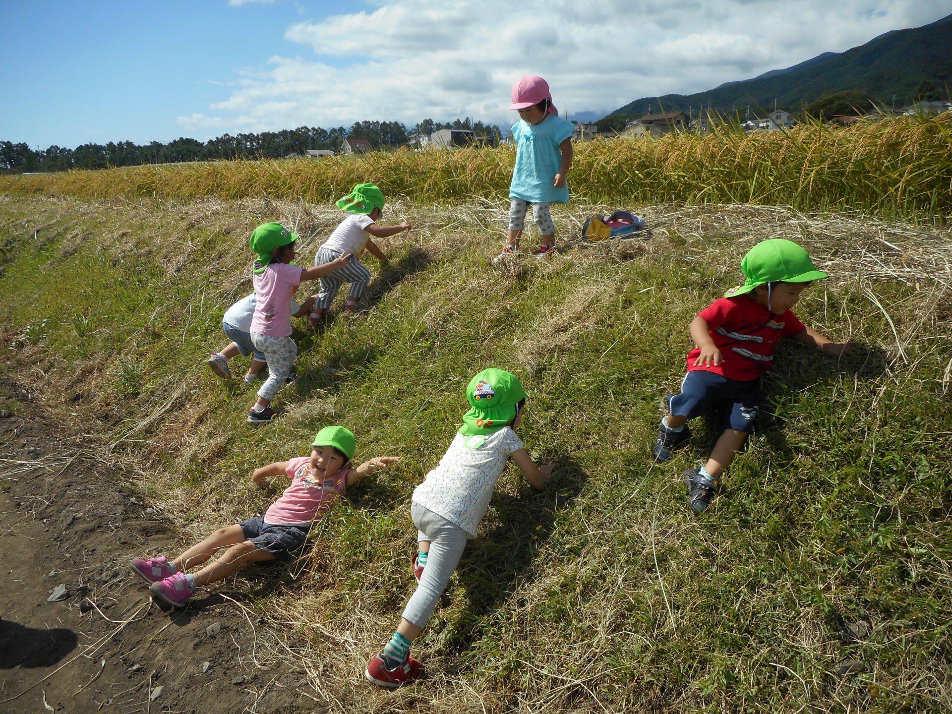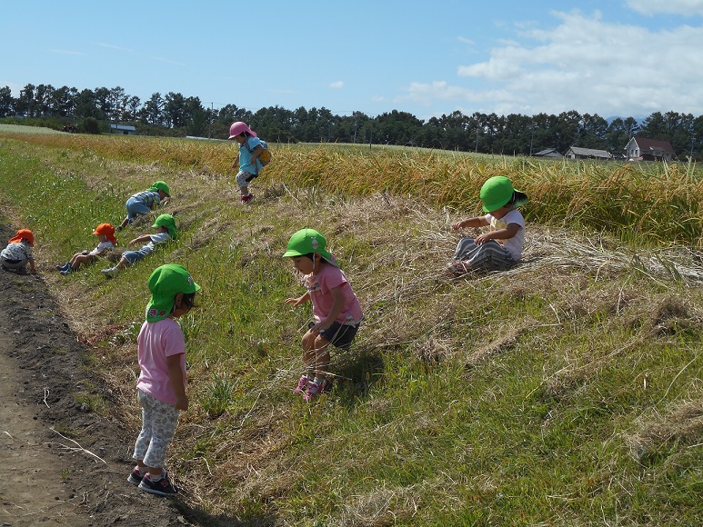 しばらくの間、土手を登ったり滑って下りての遊びに夢中の子どもたちでした。