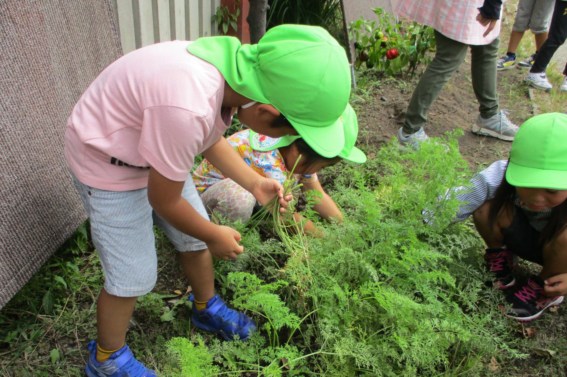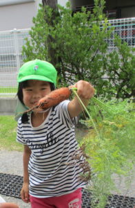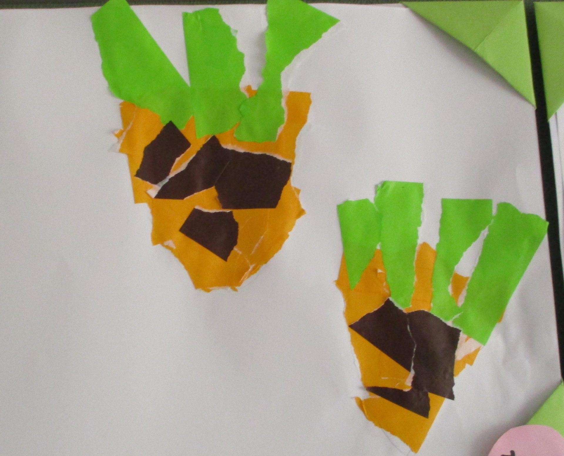 ・5歳児は収穫した体験から人参を貼り絵で表現し、素敵な作品ができました。
