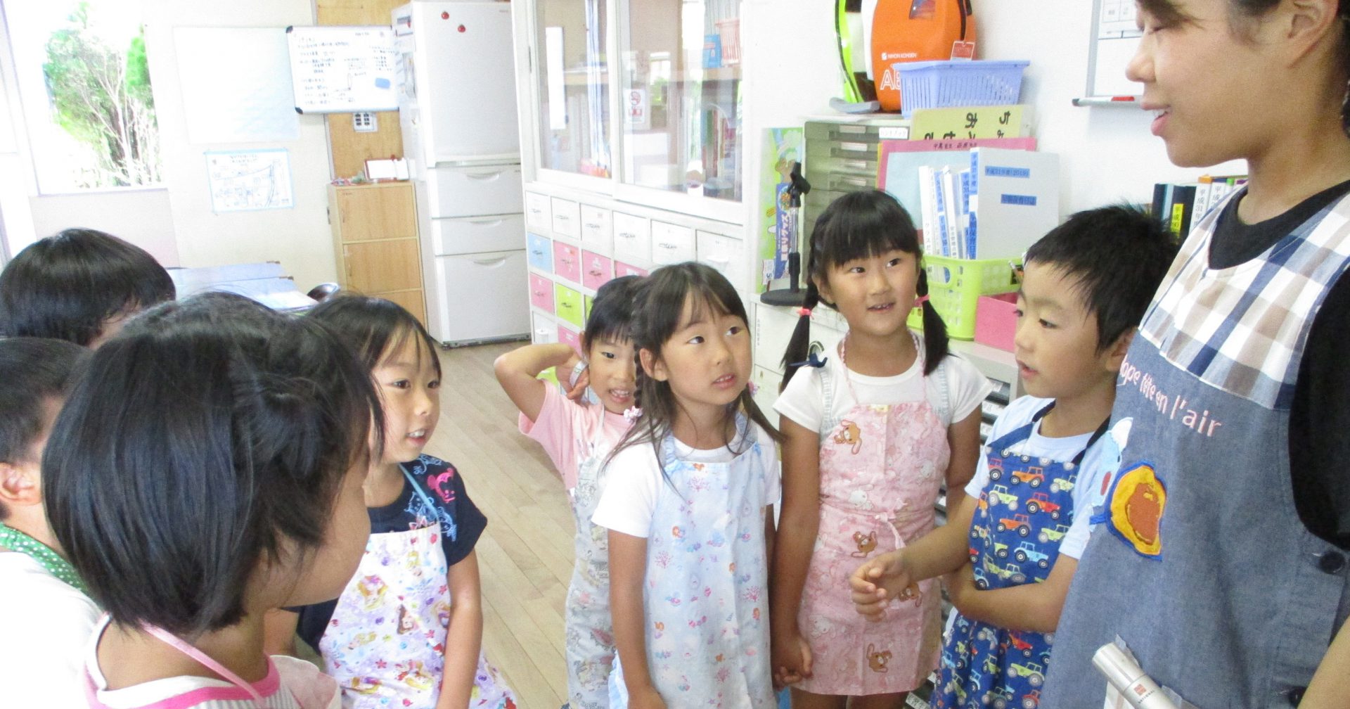 うめ組の当番が集まり、人参のお知らせをするために事務室で相談中・・・