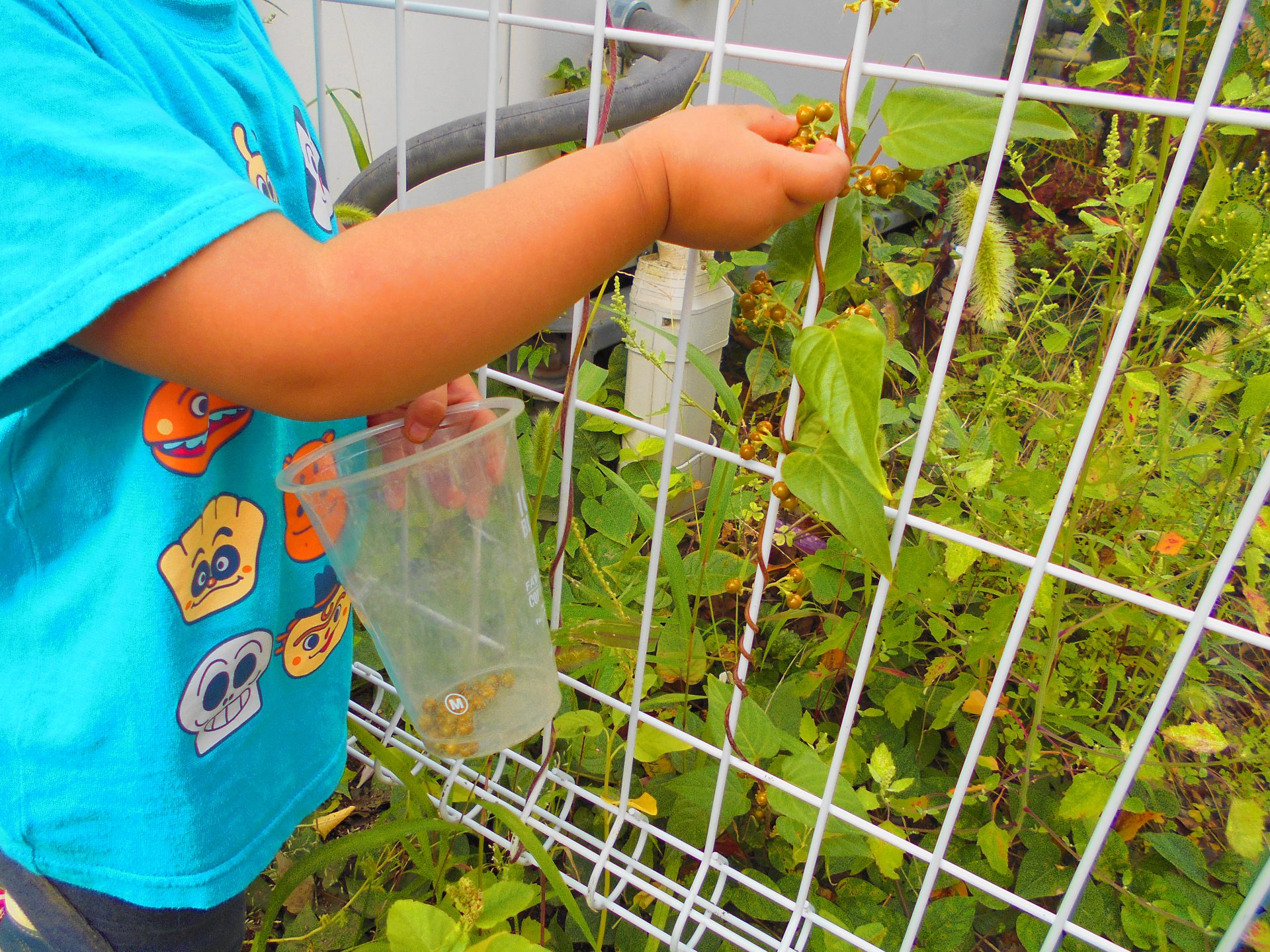 小さなつぶつぶを、小さな手で取ろうとしている子どもたちは、とても集中していて真剣でした。