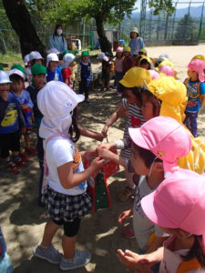 ひまわりの苗と写真、素敵なお土産を持って保育園に帰りました。秋は年少さんも一緒に峠を越えて交流です。楽しみです