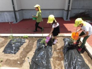 保育園の畑に野菜を植えた時から「こんな風にして食べたい!」と、収穫したらどんな風にして食べたいか考えていた子ども達。
