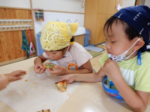 自分たちで実際に具材に触って、クッキングが出来たことで、触感や匂い、いろんな方向からの発見を楽しめたように感じます。