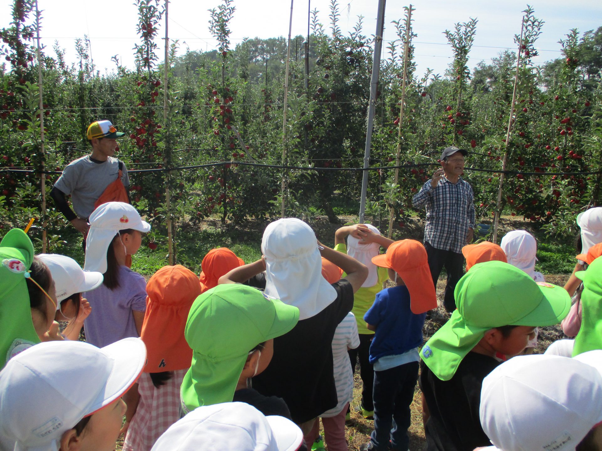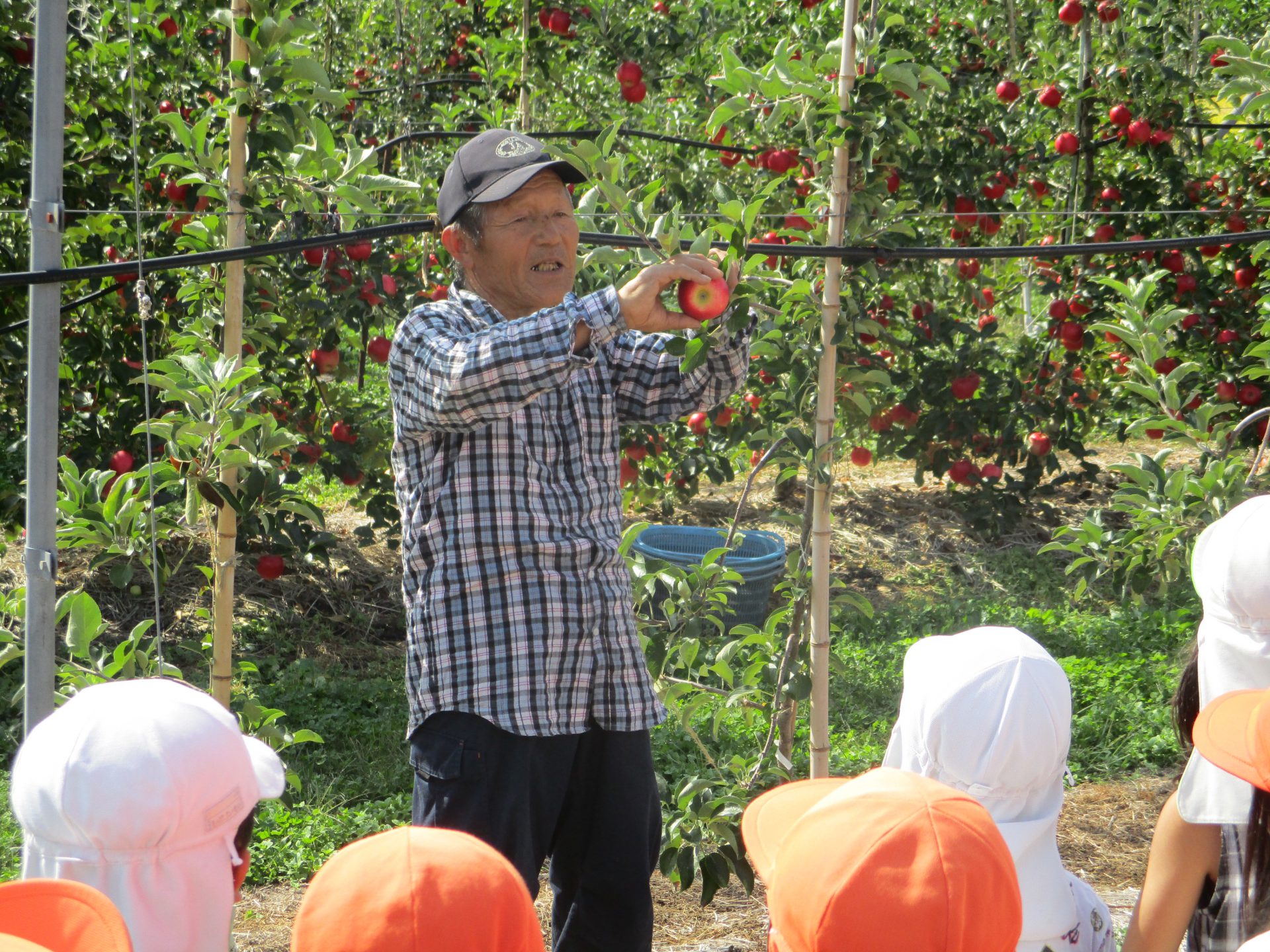 「今日、みんなが採るりんごは“シナノピッコロ”という名前のりんごです。名前に“シナノ”とついているのは、長野県でつくったということです」