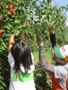 「りんごを採る時は、上に持ち上げると上手に採れるよ」と、教えていただきました。