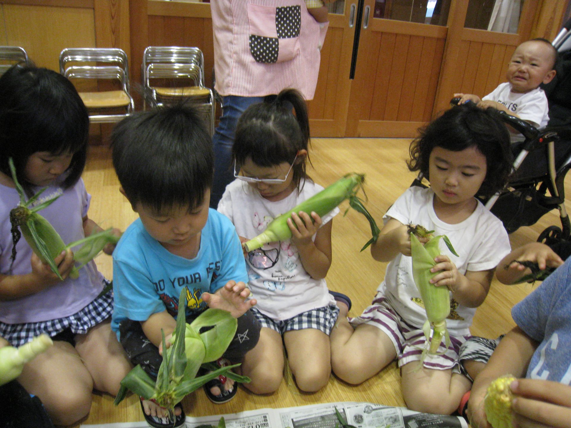 きれいに剥けると達成感があり、お昼寝から起きて給食室にとうもろこしの様子を見に行く様子がありとても心待ちにしていました。
