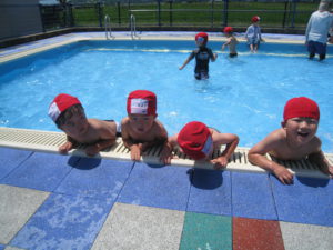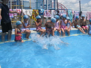 ・水の心地よさに気づいたり友達の姿を見て自分から挑戦しようとしたりして、思い思いにプール遊びを楽しんでほしい。