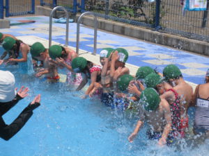 水に慣れてくると、いろいろな遊びを楽しむ子ども達でした。