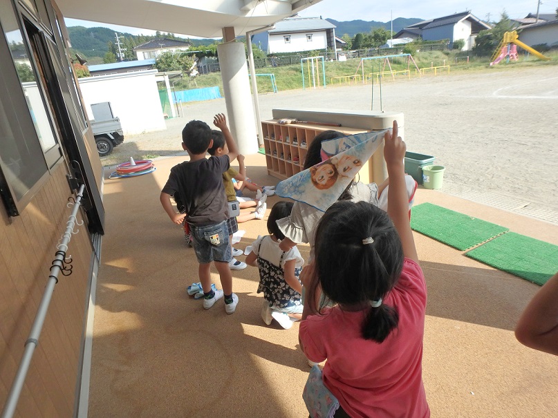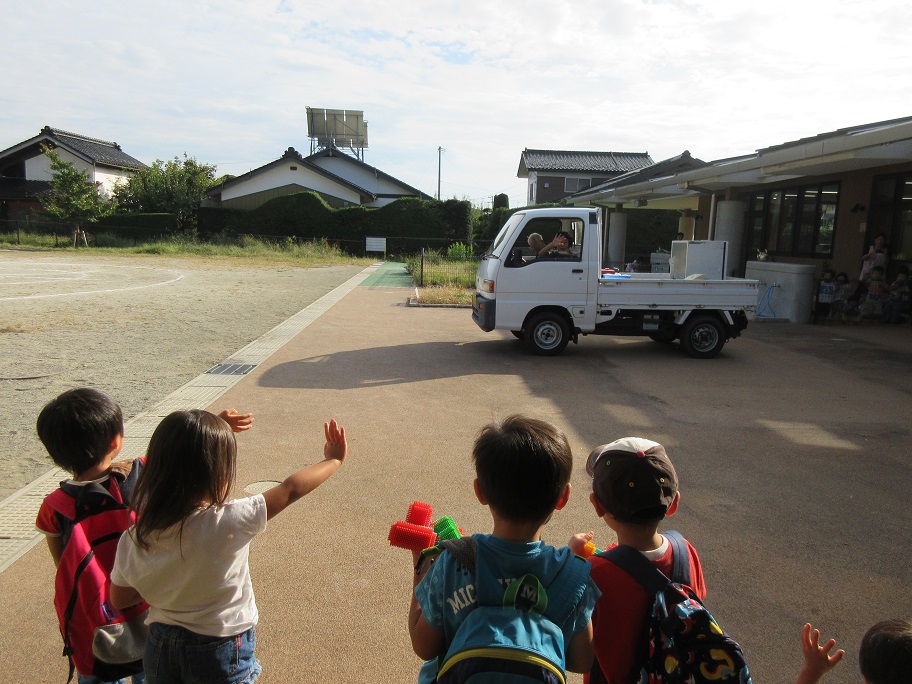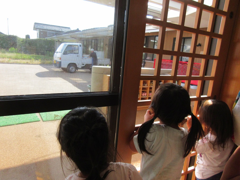 年中・年長児も車が見えなくなるまで手を振っていました。