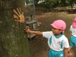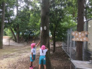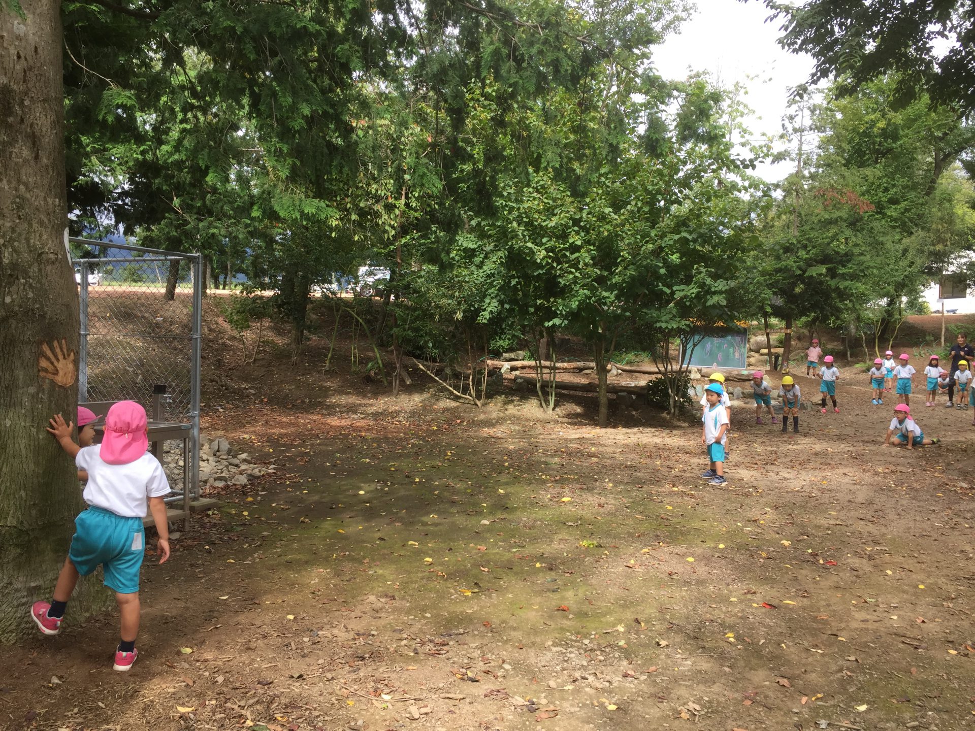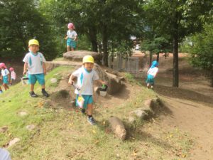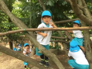 この森の中で体をたくさん動かしながらたくさん発見し、友達や保育者と思いを共有しながら色々な経験をしてもらいたいと思います。