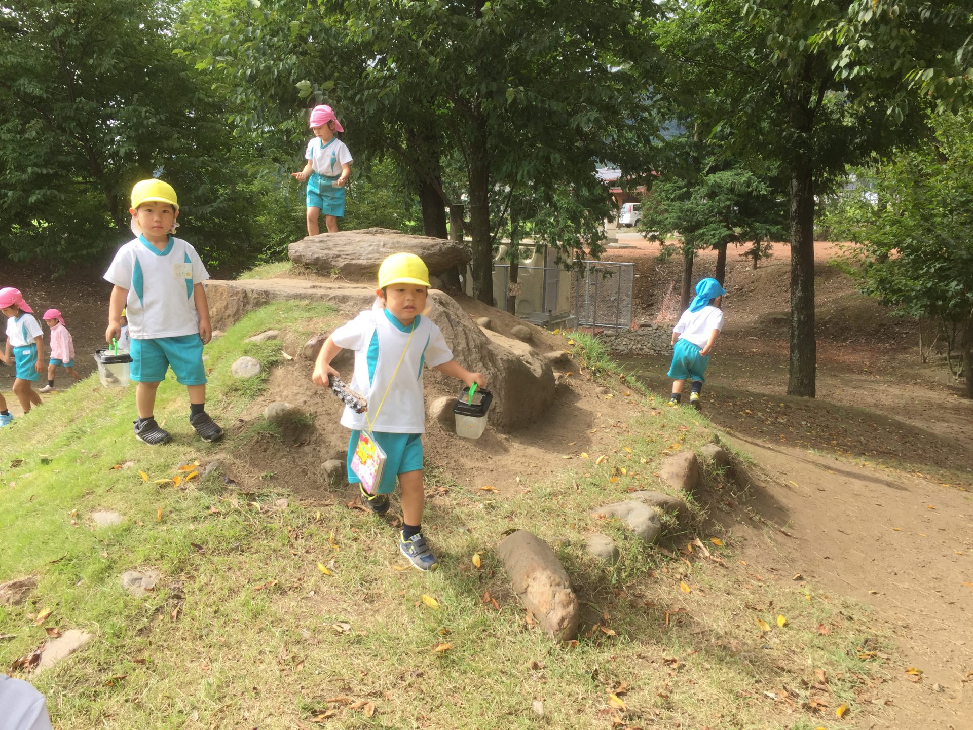 今の時期、虫もたくさんいます。カマキリやバッタ、トンボなど虫探しに夢中な子もいます。