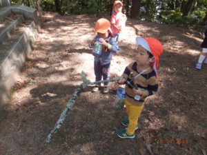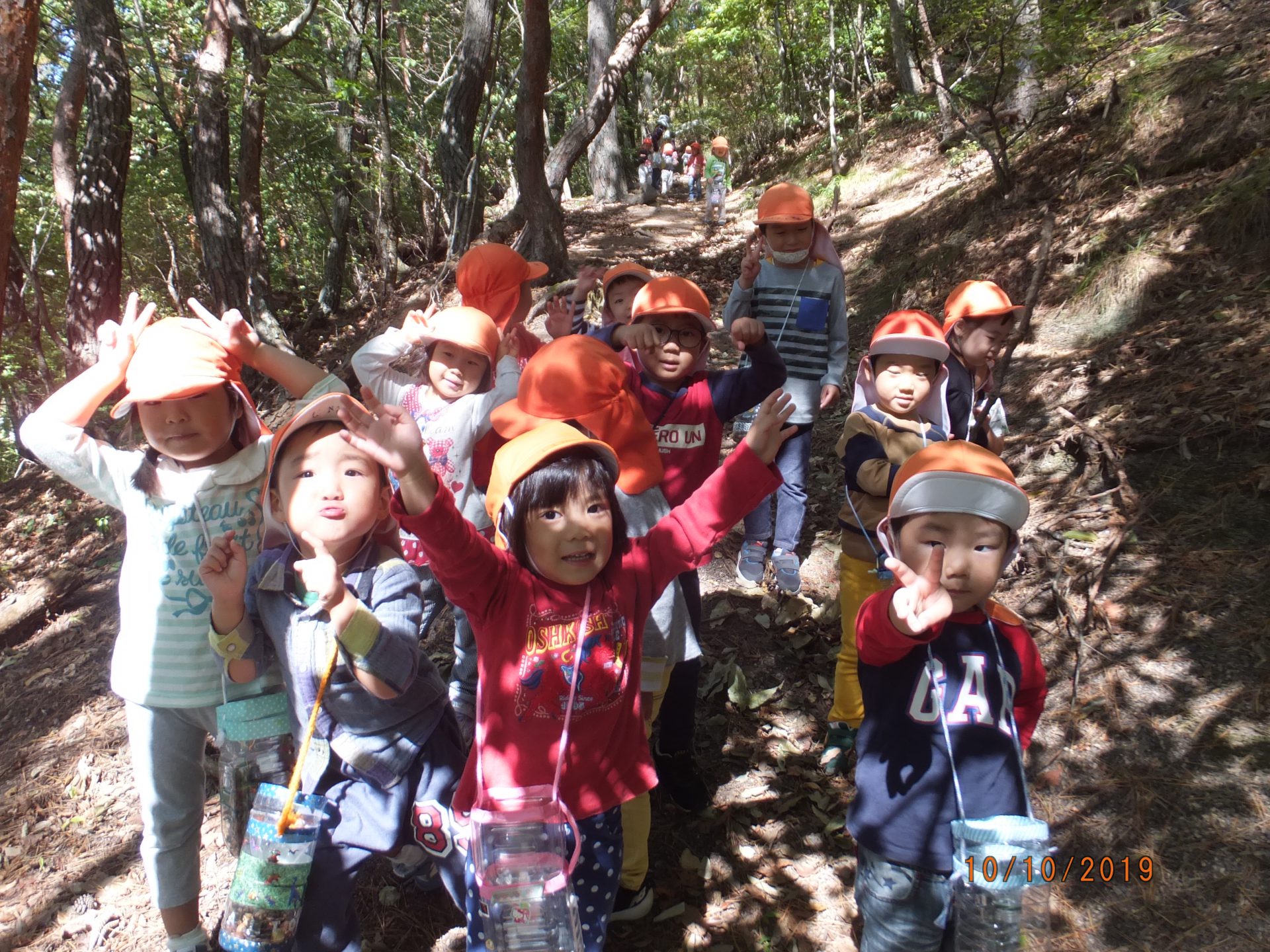 この日は、年少のすみれ組、つくし組のみんなで湯坂山へ遊びに行きました。