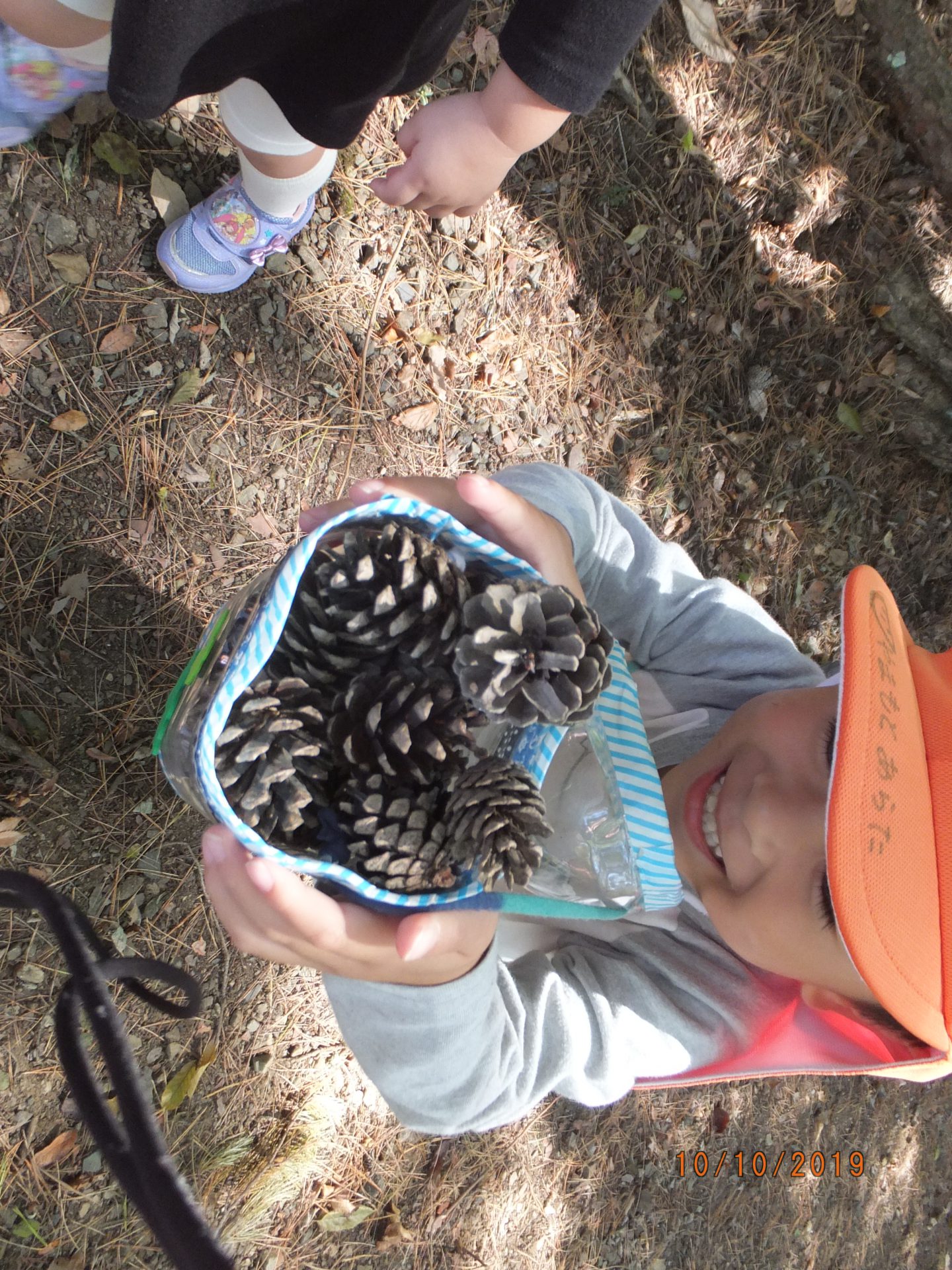 お散歩バッグに入りきらないぐらい沢山拾った子どもたちもいました。