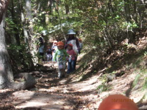 この湯坂山には、どんぐりが沢山落ちているということで、みんなお散歩バックを肩に下げて向かいました。