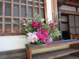 お寺の奥様がお花をいけてくださいました。そして、お釈迦様についての話もお聞きしました。