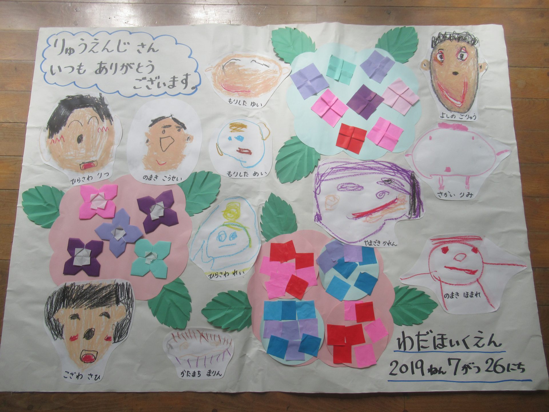作品を渡すと喜んでくださり、早速本堂に貼ってくださいました。