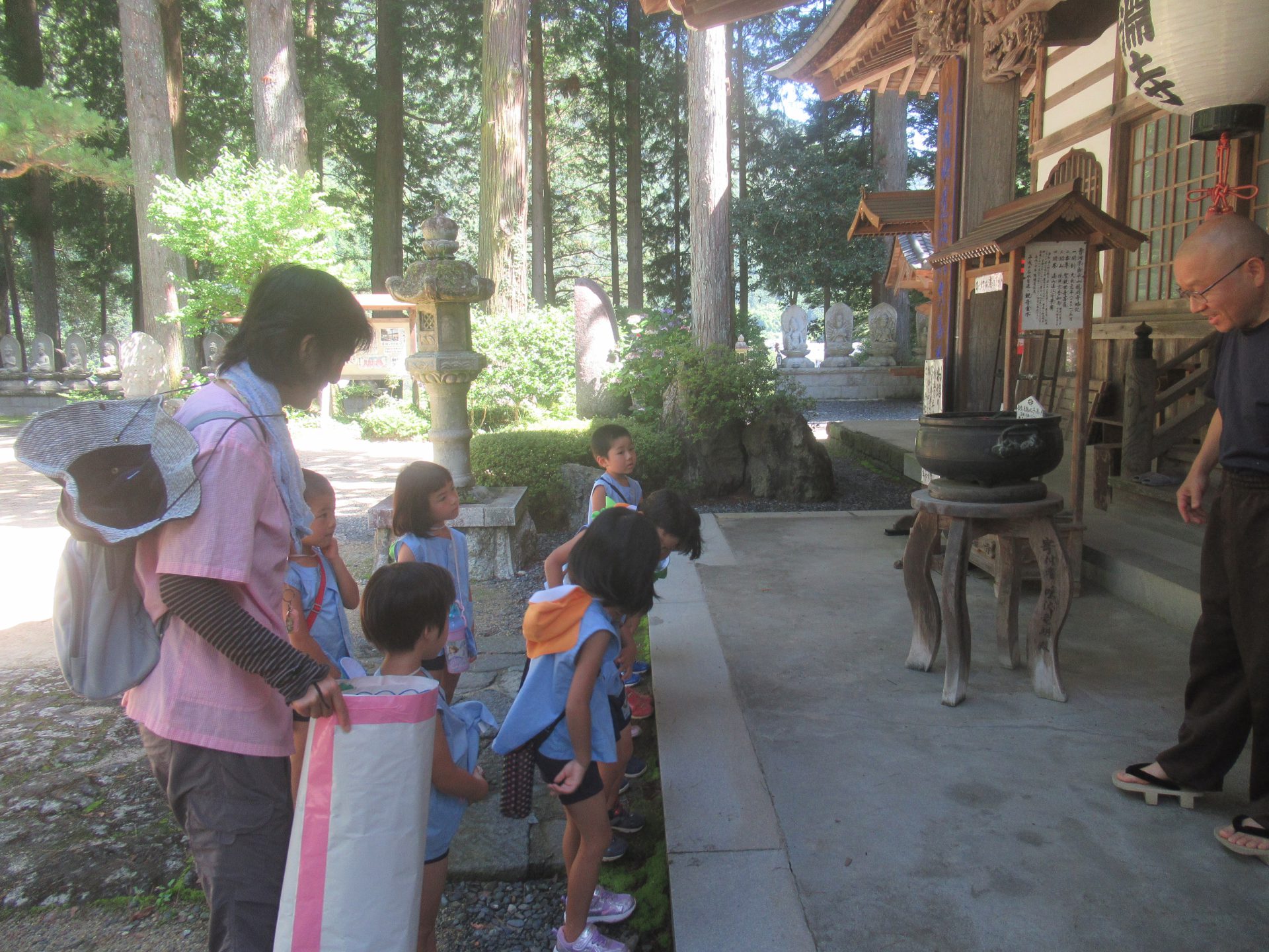 地域のお寺である、「龍淵寺」さんには、遊びに行くことが多く、子どもたちにとってなじみの場所です。