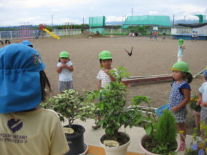 給食にでた夏みかんの種をまいたら、10センチほどに成長。ここにも卵産んでくれないかな~。