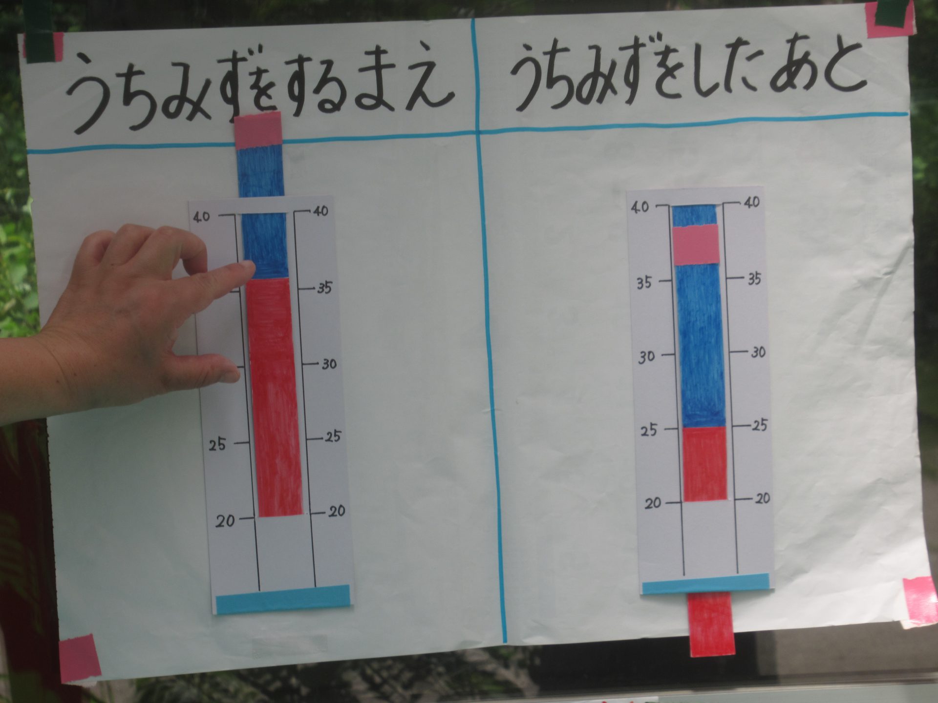 又、水を撒くことで気温が変わるという科学的な体験ができました。