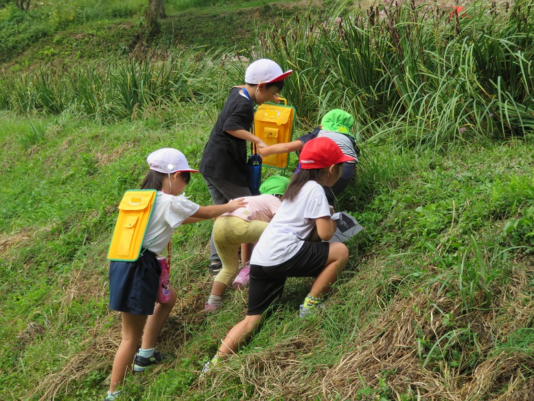 アサギマダラを見た後は土手で遊びました。