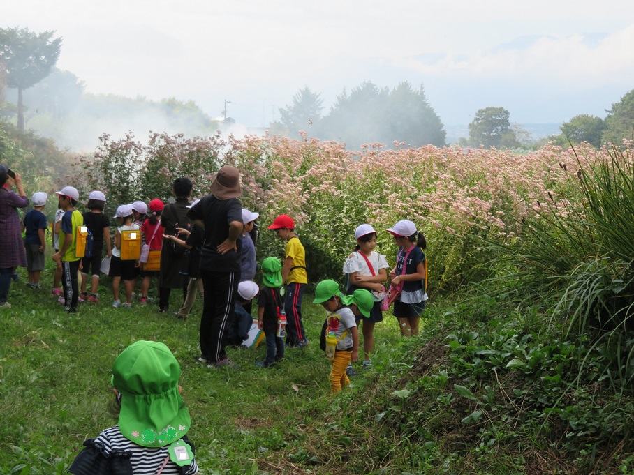 東小学校の2年生も校外学習でアサギマダラを見に来たようです。