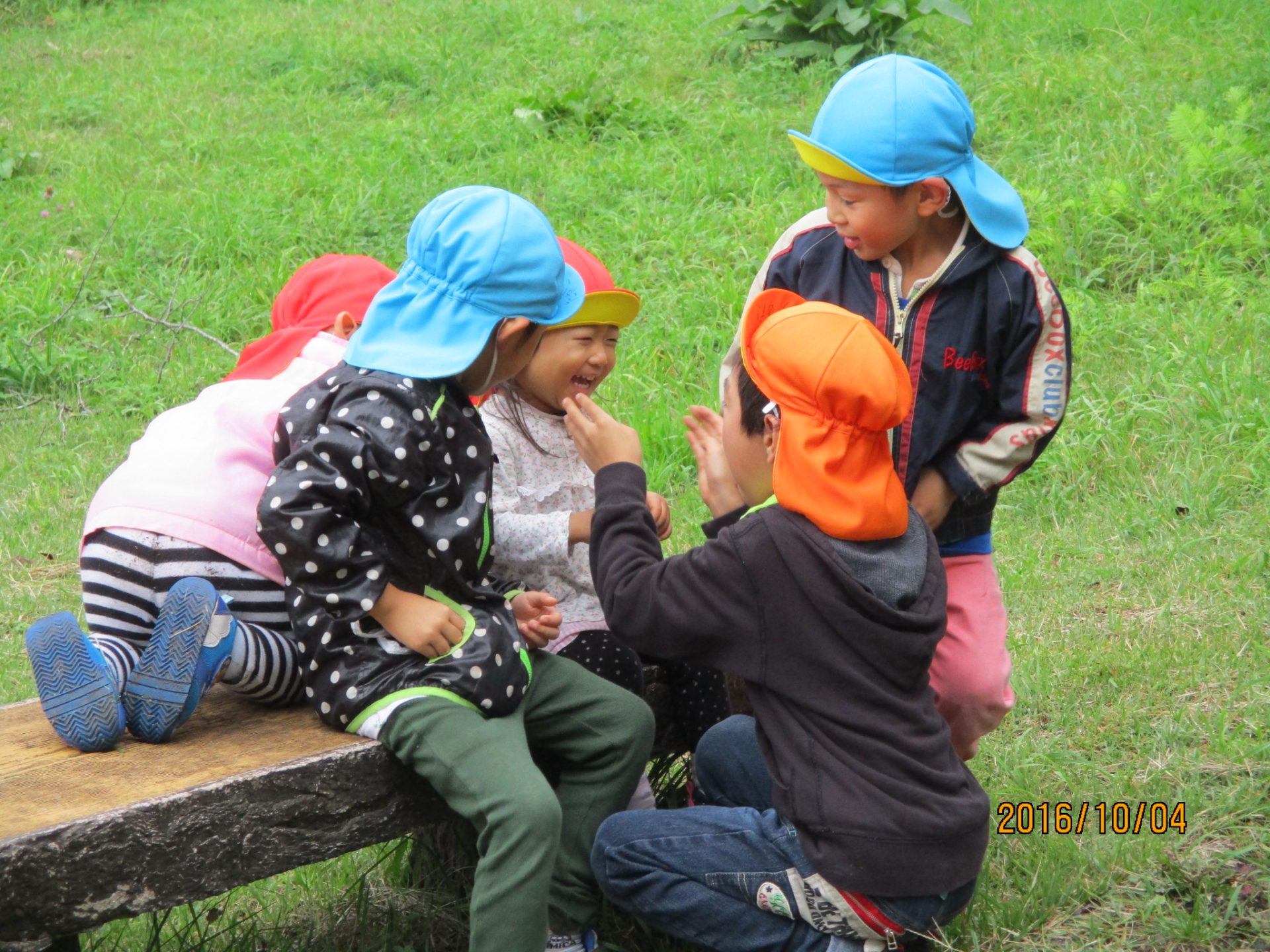 ちょっとベンチでひと休み。年長さんが年下の子をあやす優しい場面も❤