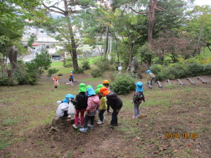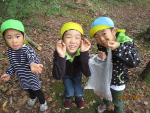 自然がいっぱいの小丸山公園。同じ信濃町でも富士里の子はこんなにたっぷり遊んだのは初めてかもしれません。途中で柏原保育園のお友達にばったり出会う嬉しいサプライズもあり、遠足を満喫する事が出来ました。どんぐりの種類に気付く姿のように、自然の不思議をたっぷり味わって秋を楽しんでいきたいと思います。