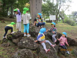 石碑の上もちょっとお邪魔します。石の上って乗りたくなっちゃう。少し難しそうなところがワクワクするんだよねー。