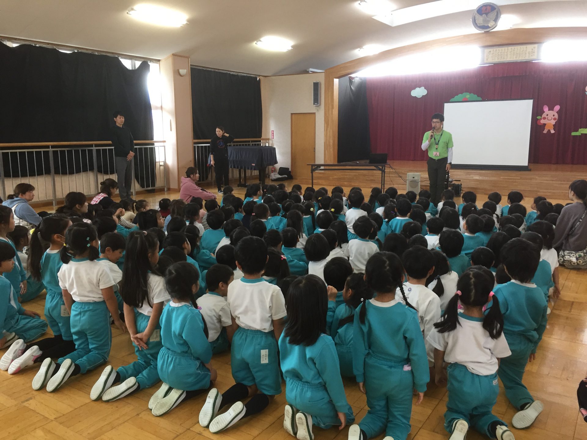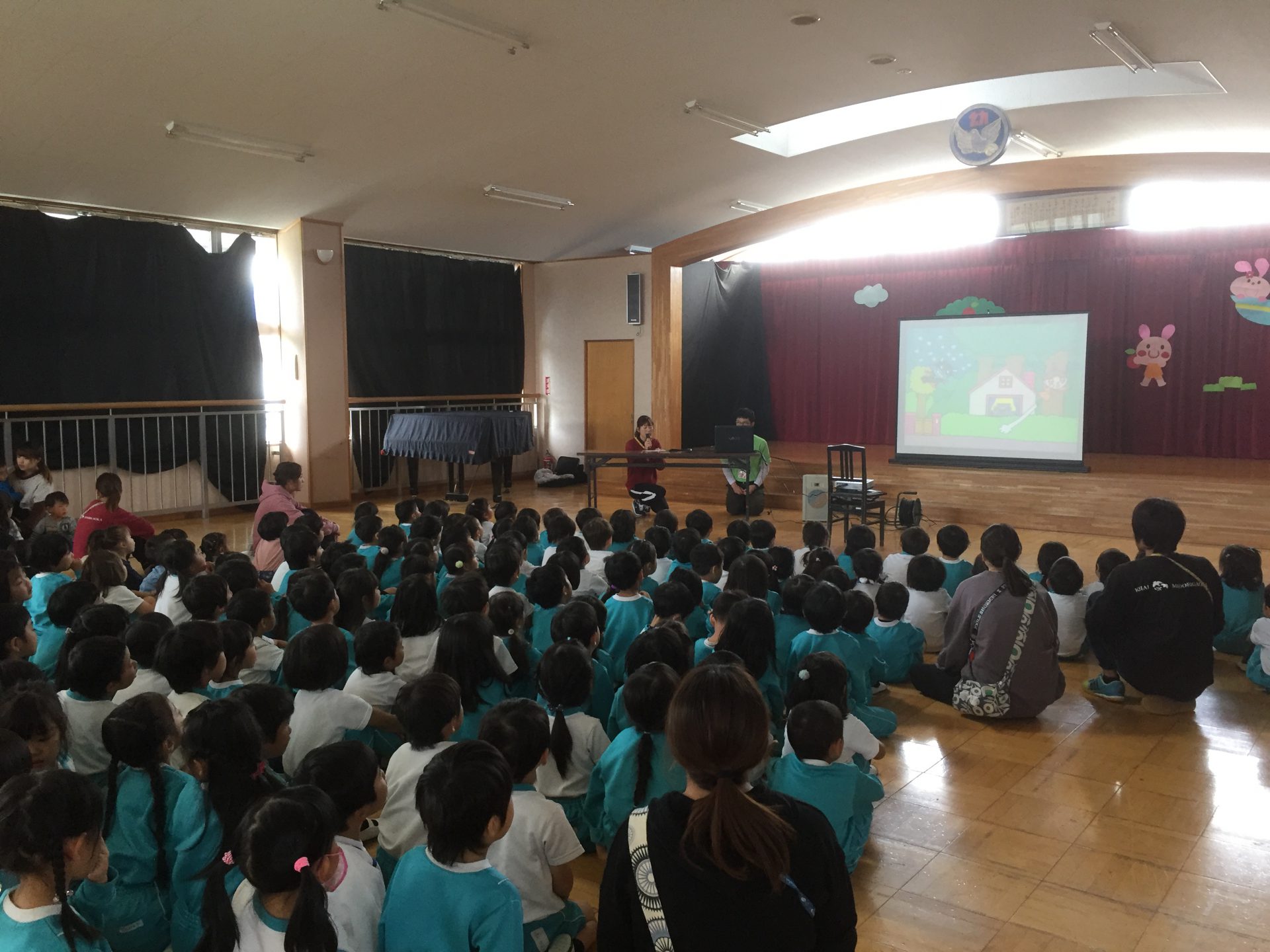 お話をプロジェクターに映し、みんなでみました。