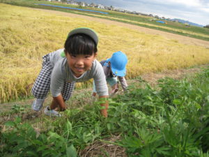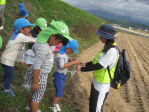 田んぼに囲まれた浅科ならではの体験を通し、生き物に興味を持ったり大切にしたりしながら、自然の中で思い切り楽しんでほしい。