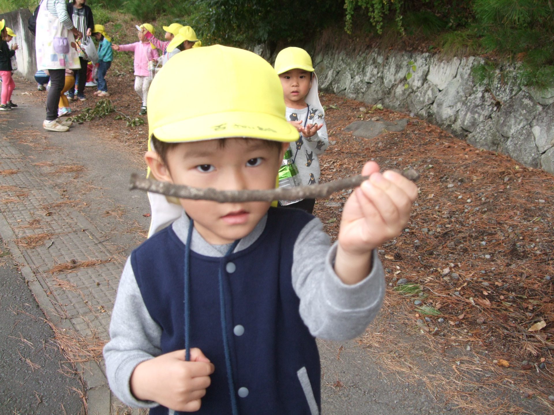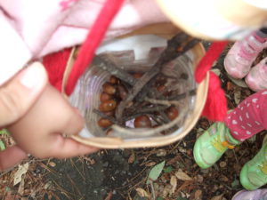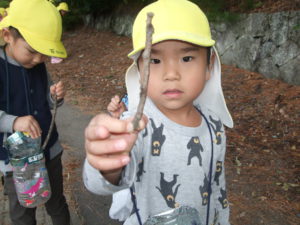 最後には、一人ひとりたくさんの木の枝やどんぐりを集めることができました。