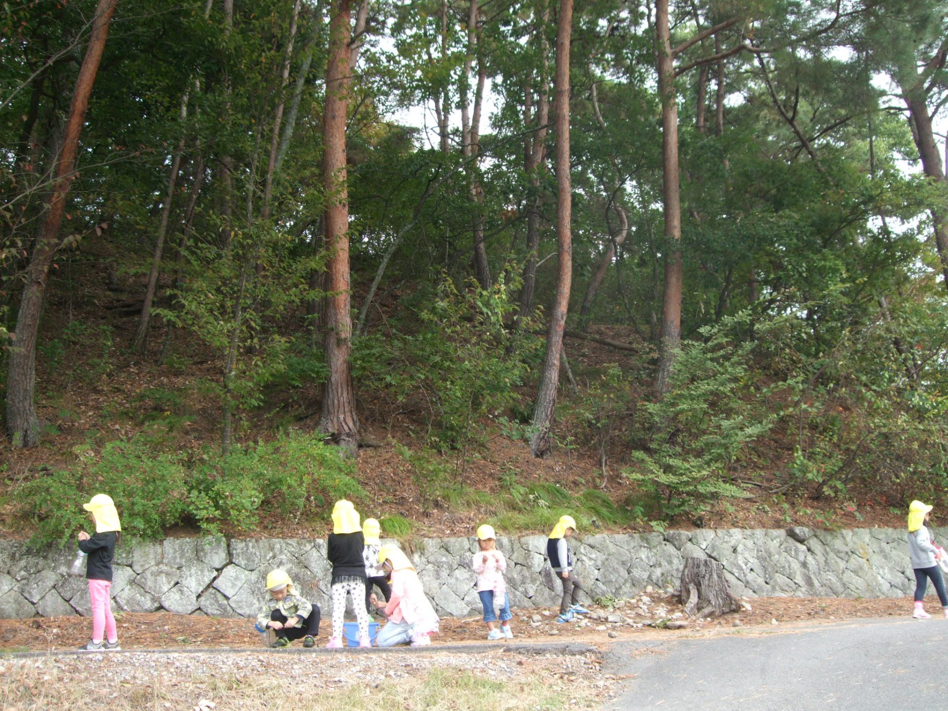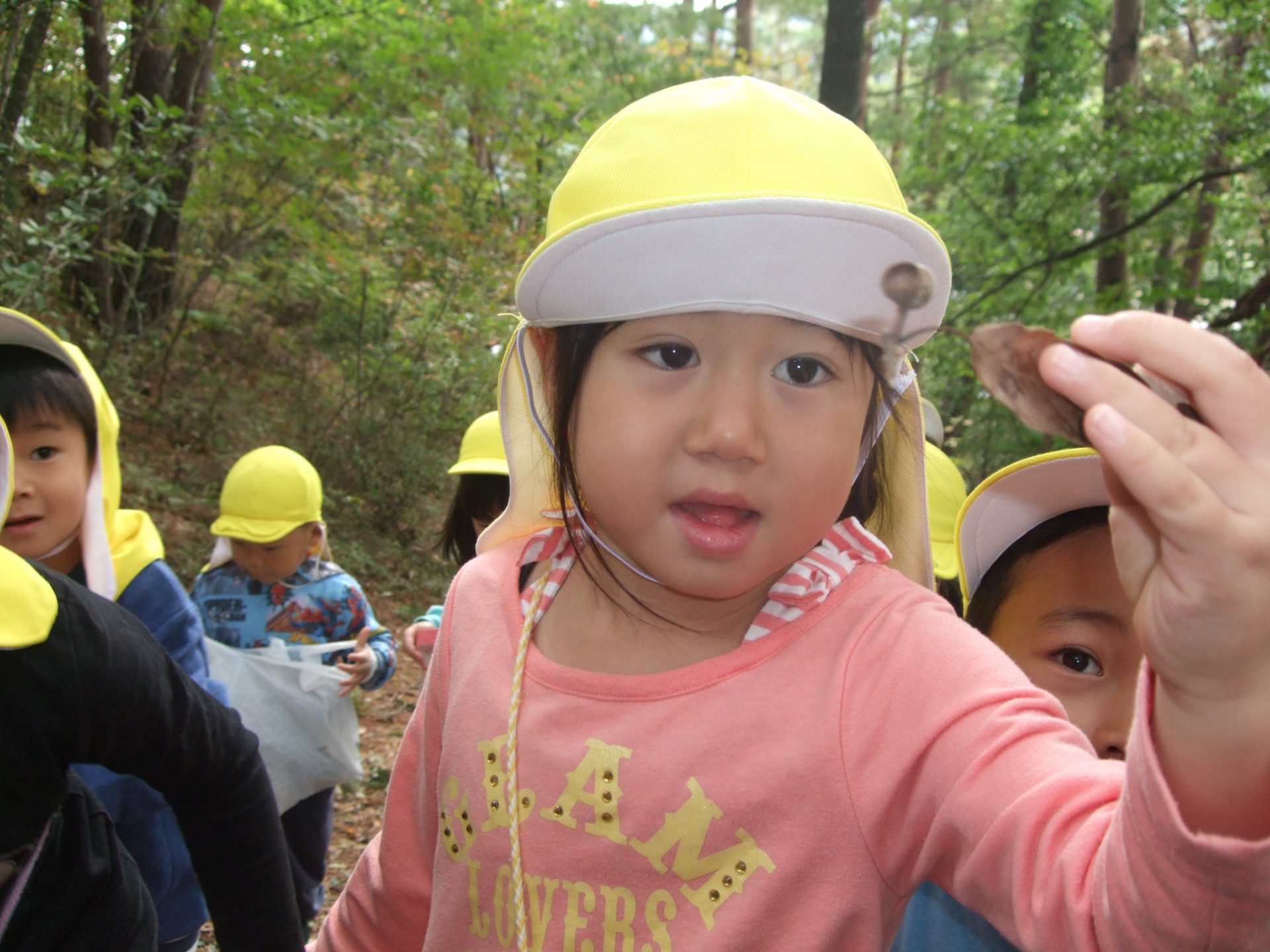 湯坂山には、秋になるとどんぐりやまつぼっくりなど、さまざまな種類の木の実が落ちていて、子どもたちは大興奮!