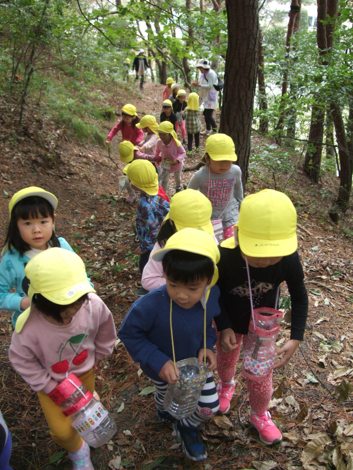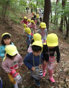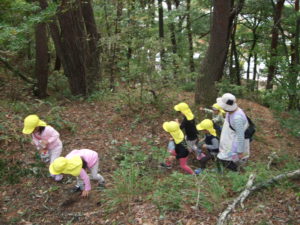 年少組からたくさん湯坂山に登っていた子どもたちは、大人でも傾斜のきついでこぼこ道でもしっかりと土を踏んでいく姿は、とてもたくましいです。